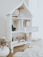 Drewniany duży domek dla lalek z poddaszem i balkonem, domek do zabawy Charlott