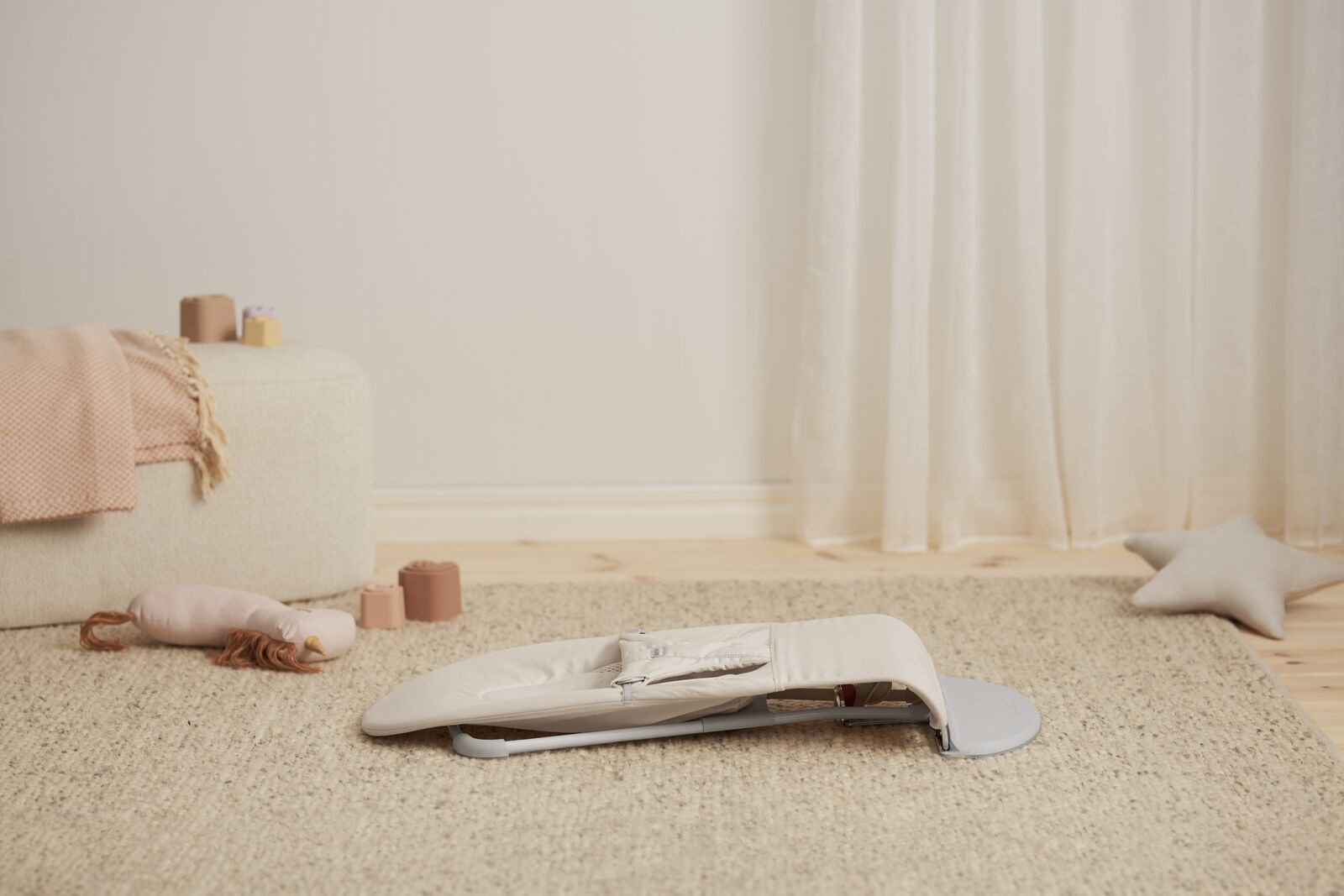 Leżaczek BabyBjörn kołysze się delikatnie, gdy dziecko macha rękami i nogami. Nie są wymagane żadne baterie – leżaczek BabyBjörn dla dzieci to czysta zabawa!