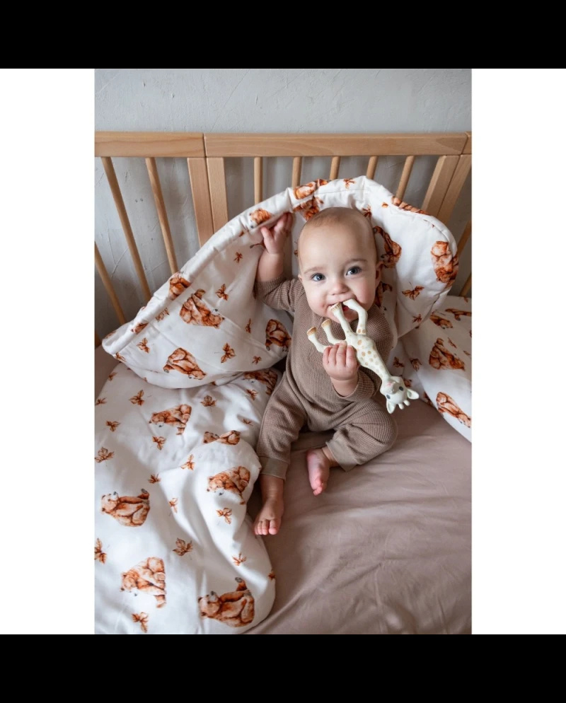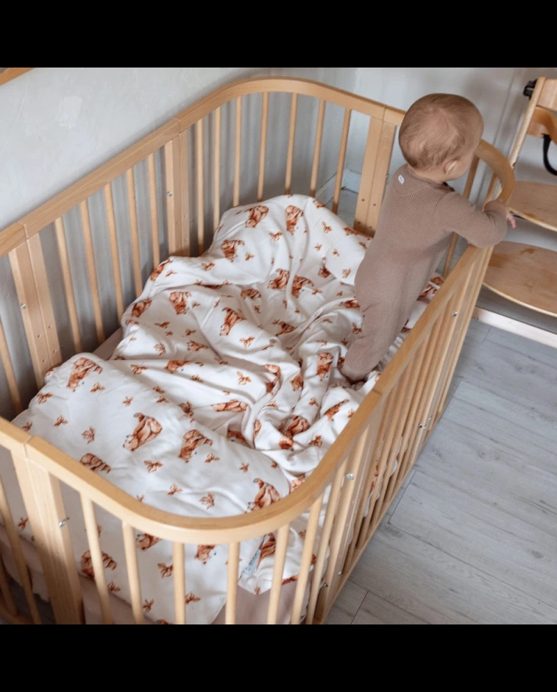 Bambusowa kołderka z wypełnieniem, wzór "Niedźwiadki" W naszej najnowszej kolekcji pościeli dla dzieci "Dziecięce Sny" postawiliśmy na naturalną i hipoalergiczną tkaninę bambusową, która zapewnia doskonałą cyrkulację powietrza oraz jest delikatna i niezwykle miła w dotyku. Najważniejsze cechy i zalety tkaniny bambusowej: Miękkość i delikatność – bambus jest niezwykle miękki, przypomina jedwab, a jednocześnie jest bardziej trwały. Hipoalergiczność – idealny dla wrażliwej skóry niemowląt, nie powoduje podrażnień ani alergii. Antybakteryjność i antygrzybiczność – naturalne właściwości bambusa hamują rozwój bakterii i grzybów. Oddychalność – zapewnia doskonałą cyrkulację powietrza, co zapobiega przegrzewaniu. Higroskopijność – tkanina bambusowa wchłania wilgoć nawet o 60% lepiej niż bawełna, dzięki czemu dziecko pozostaje suche i komfortowe. Termoregulacja – chłodzi w upalne dni, a ogrzewa, gdy jest chłodniej. Ekologiczność – bambus rośnie szybko, bez pestycydów i sztucznych nawozów, a jego uprawa jest przyjazna dla środowiska. Specyfikacja kołderki: Tkanina: 100% wiskoza bambusowa Wypełnienie: włóknina wysoko-puszysta silikonowa Dostępne rozmiary: - 100 x 75 cm, - 120 x 90 cm, - 135 x 100 cm, - 150 x 100 cm. Zaleca się pranie przed pierwszym użyciem zgodnie z instrukcją na metce. Odcienie druków na tkaninach bądź odcienie surowców składowych produktów mogą różnić się w zależności od partii produkcyjnych. Nie stanowi to wady produkcyjnej.Jak również, kolory przedstawione na zdjęciach mogą odbiegać od rzeczywistości w zależności od indywidualnych ustawień wyświetlacza (monitora).