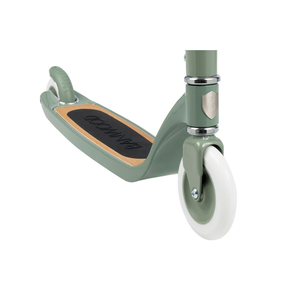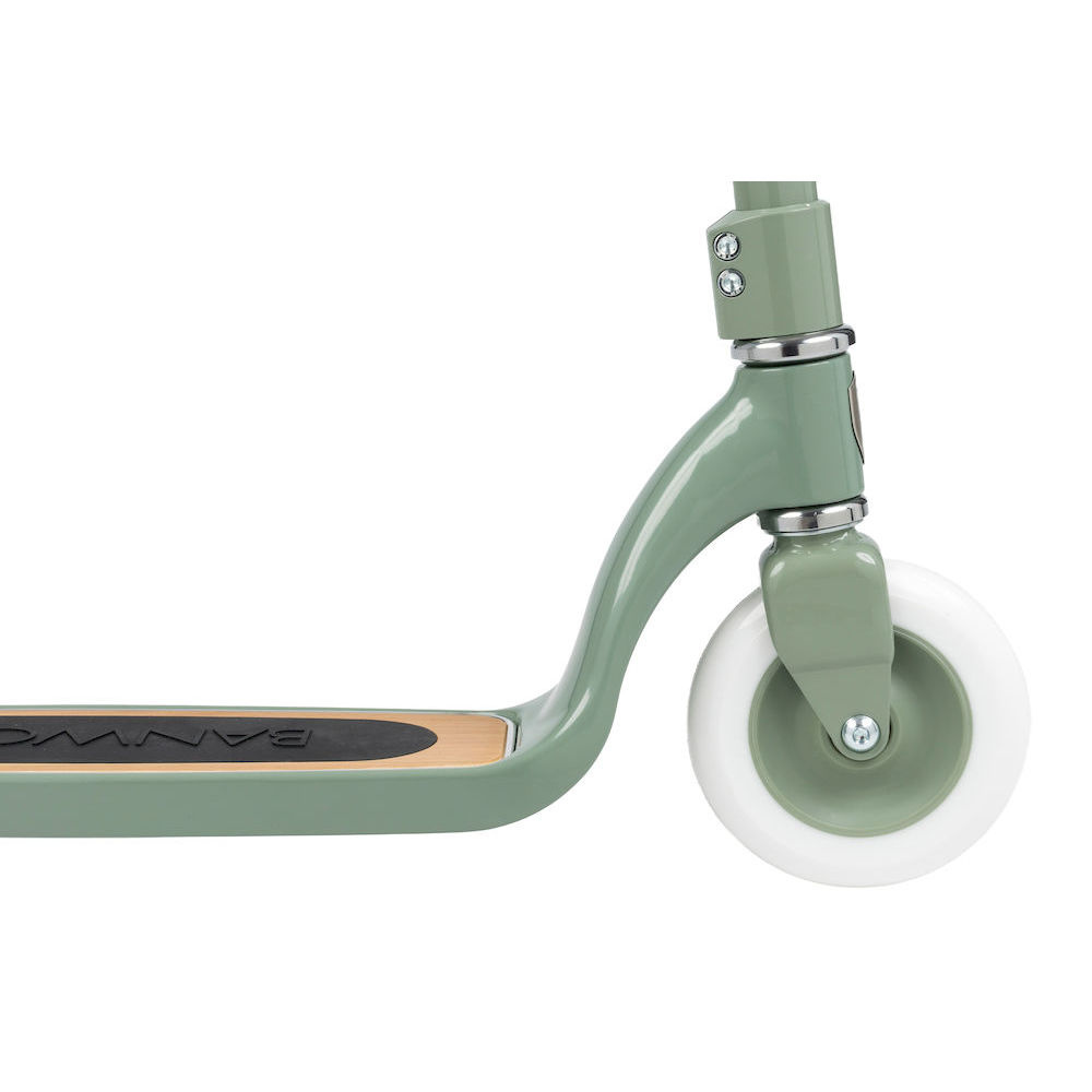 Hulajnoga Banwood wyposażona jest w ergonomiczną kierownicę w kształcie litery T, którą można łatwo dostosować do wzrostu dziecka, lekką aluminiową ramę oraz klasyczny, jak w rowerze, system sterowania. Inspirowane stylem vintage gumowe uchwyty i dębowy, antypoślizgowy podest, sprawiają, że hulajnoga jest wyjątkowa i bezpieczna.