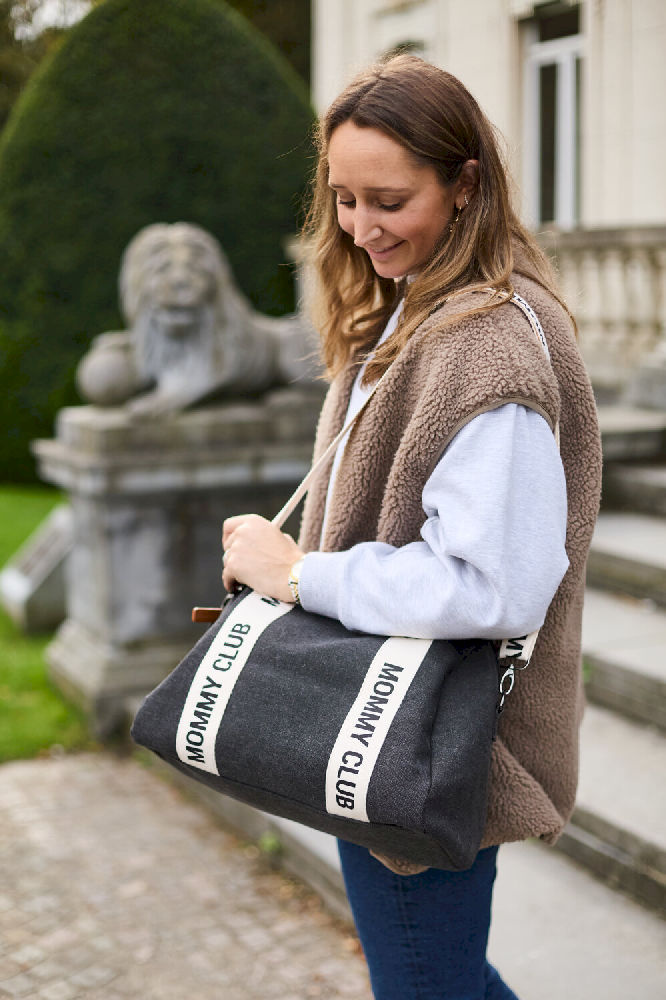 Mommy Club jest dostępna aż w czterech wersjach! Wybierzesz torebkę ze skóry PU w kolorze czarnym lub brązowym z gustownym haftem Mommy Club? A może wolisz nasz ukochany projekt Signature z uroczymi paskami z płótna, dostępny w kolorze złamanej bieli lub zieleni?