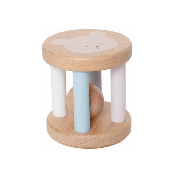 Klasyczna drewniana grzechotka dla najmniejszych dzieci. Wewnątrz grzechotki znajdują się drewniane kulki, które obijając się o siebie, wydają delikatny dźwięk. Dzięki grzechotce dziecko poprawi swoje zdolności motoryczne poprzez turlanie lub grzechotanie zabawką. Błyskawicznie stanie się ulubioną zabawką każdego malucha. Grzechotka jest całkowicie drewniana i pokryta bezpieczną dla dzieci farbą.