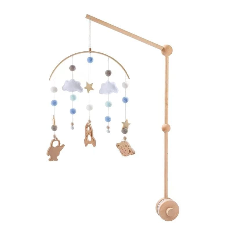 Drewniana karuzela z zawieszkami do łóżeczka dziecięcego