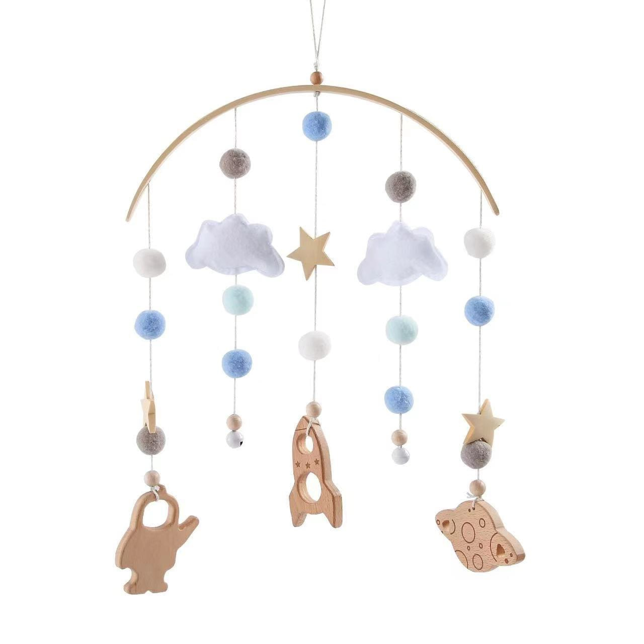 Elegancki, minimalistyczny design i neutralne, kojące odcienie zapewniają wystarczające zainteresowanie dla noworodka bez nadmiernej stymulacji. Karuzelkę można zawiesić na haczykach w suficie lub za pomocą ruchomych ramion przymocowanych do łóżeczka, które nie tylko wspierają rozwój słuchowy i motoryczny dziecka oraz stymulację wzrokową, ale także działają uspokajająco, gdy dziecko siedzi w łóżeczku lub budzi się ze snu. Piękne, proste i wyjątkowe dekoracje do pokoju dziecięcego chłopca lub dziewczynki, które doskonale komponują się z ich pościelą i akcesoriami, dodając uroku, a także ciepła i zachwytu w sypialni dziecka. Świetny prezent na przyjęcia powitalne dla dzieci, urodziny lub święta. Idealny do pokoju dziecięcego, pokoju dziecinnego lub dowolnego pomieszczenia w domu!Marka