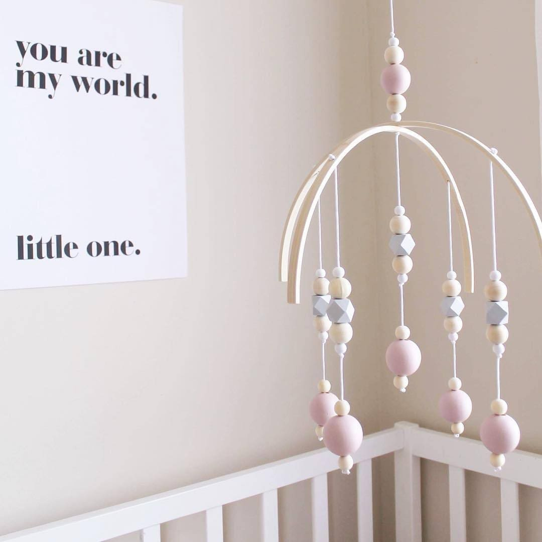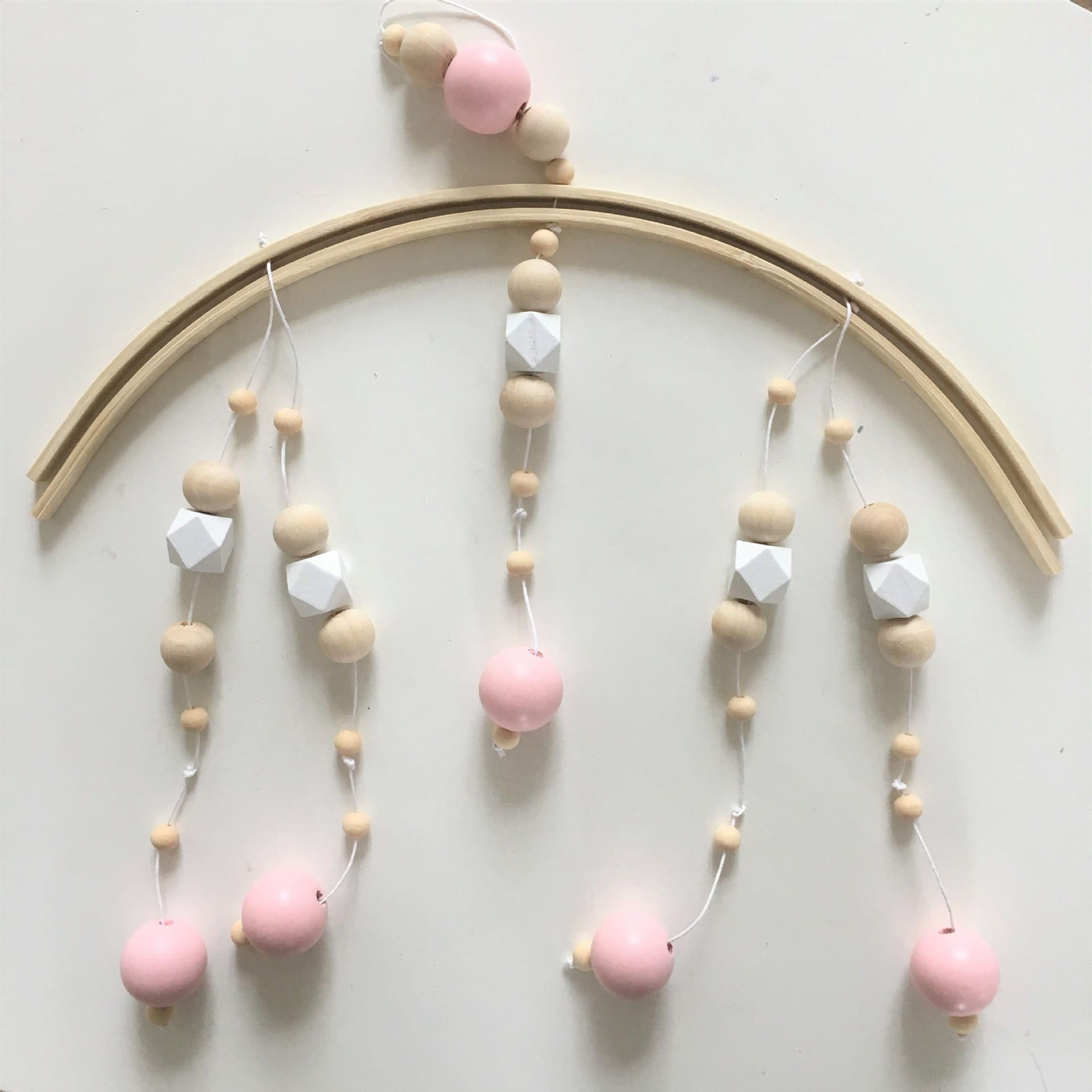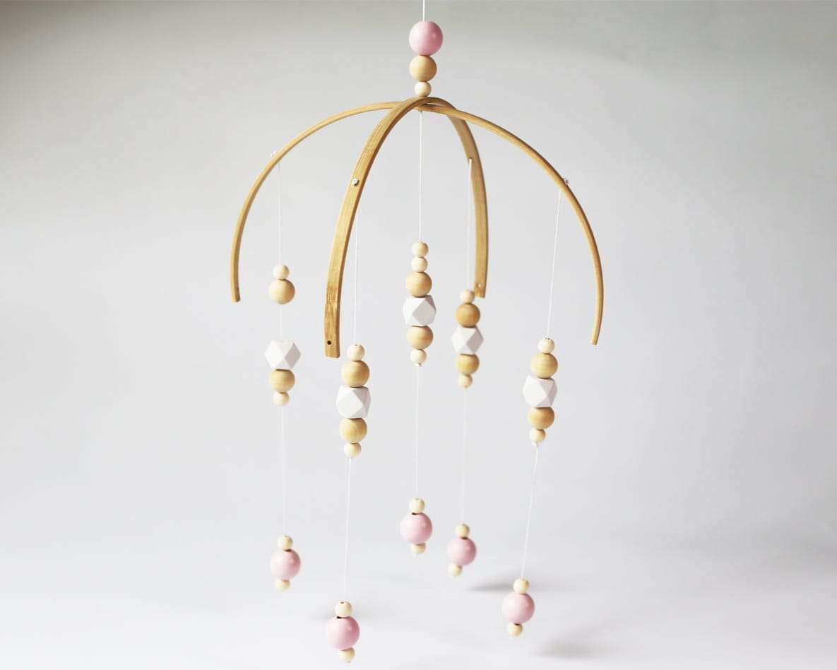 Drewniana karuzela z zawieszkami koralikami do łóżeczka