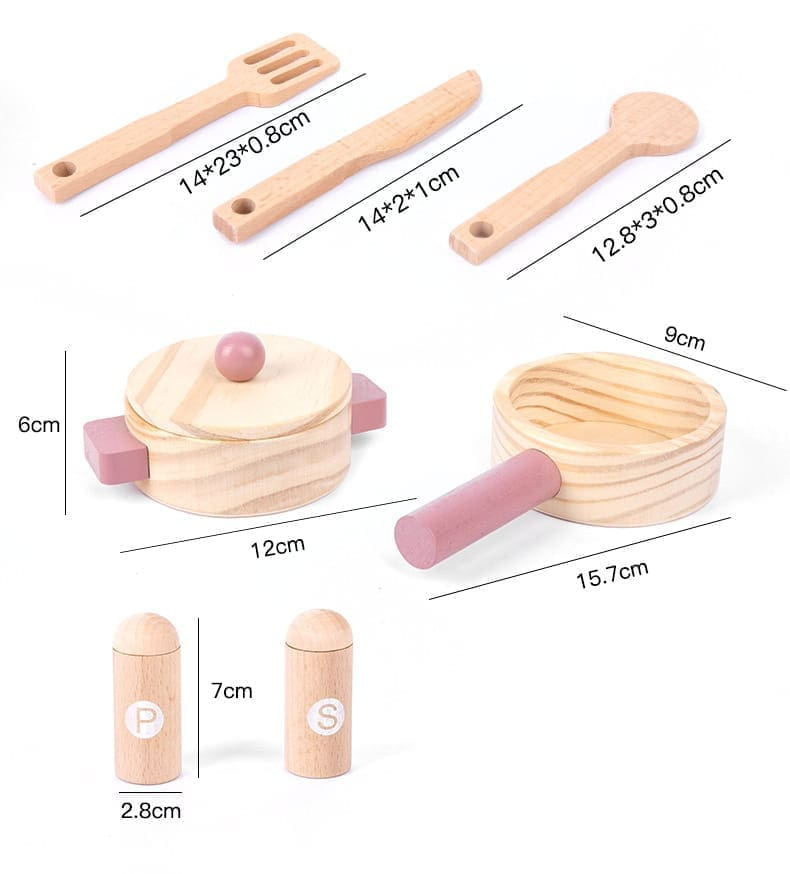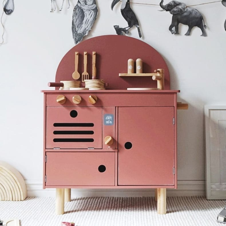 Drewniana kuchnia została stworzona z myślą o detalach. Małych kucharz ma do dyspozycji wszystkie najpotrzebniejsze narzędzia w zasięgu ręki. Kuchnia jest pięknie wykonana. Zachwyca stylem i dopracowanymi detalami. To przepiękne uzupełnienie pokoju małej królewny.