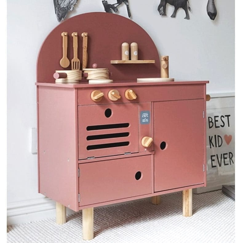 Drewniana kuchnia Retro z akcesoriami różowa dla dziecka