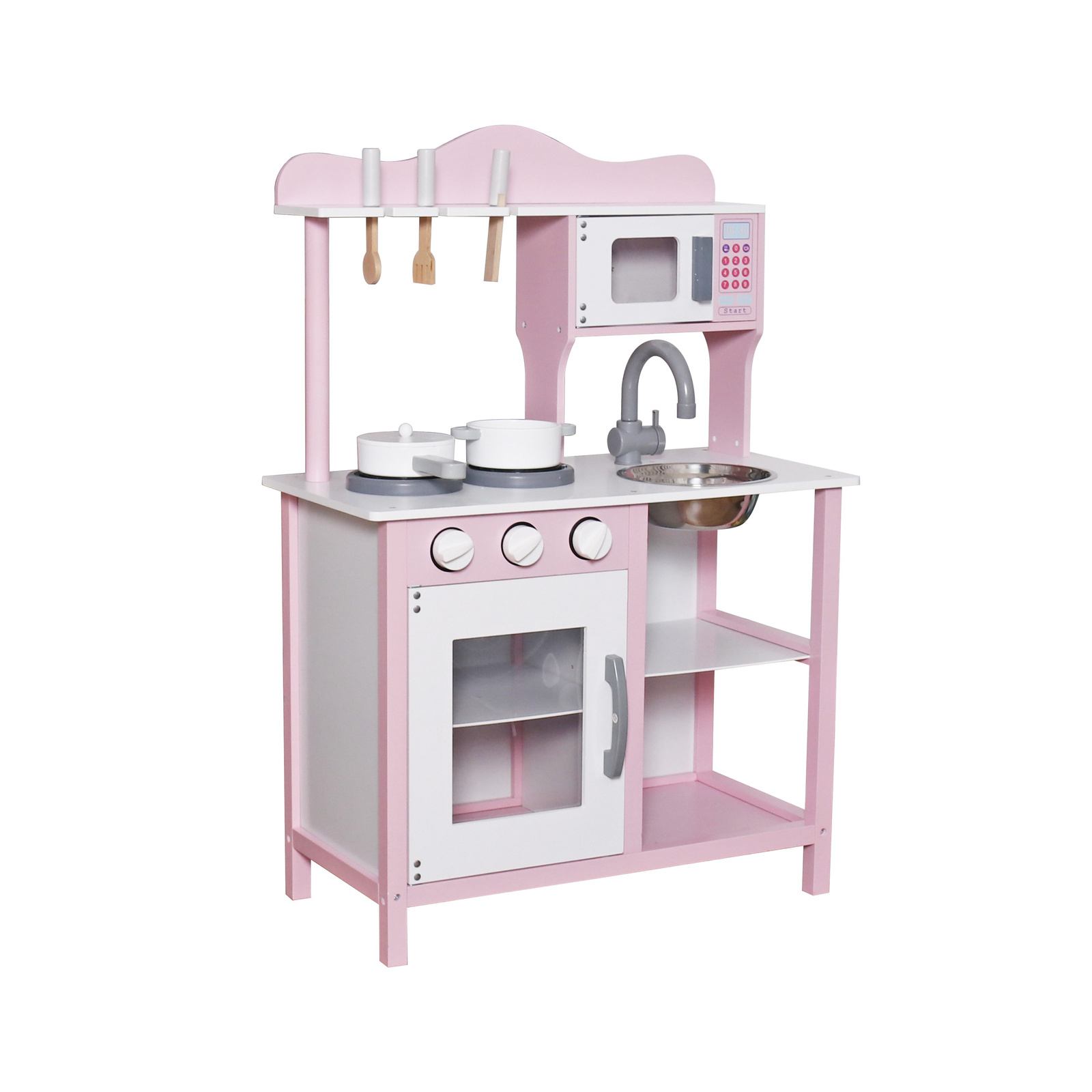 Drewniana kuchnia z akcesoriami dla dziecka, kolor różowy