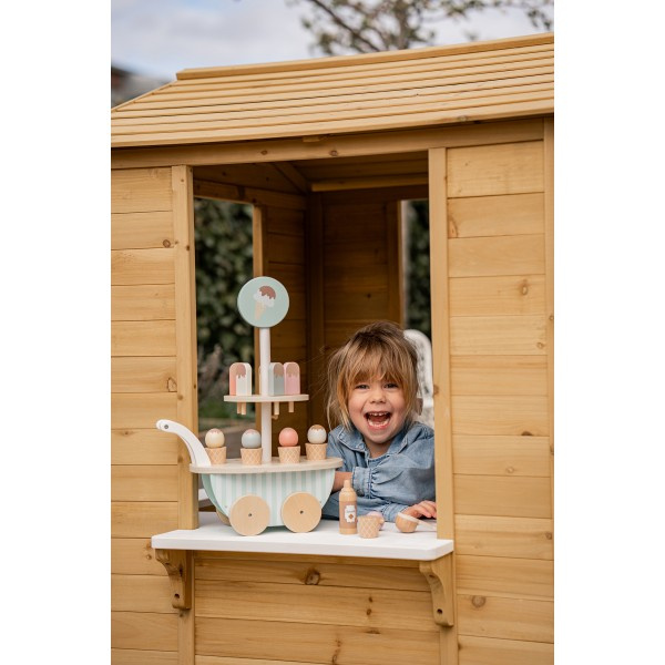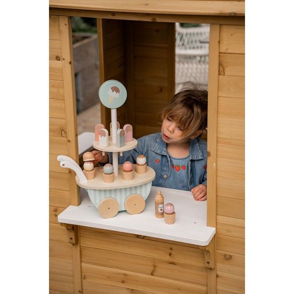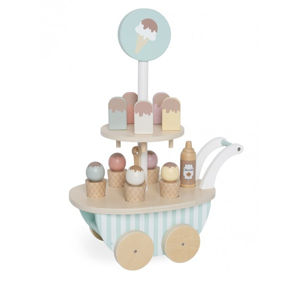 Drewniana lodziarnia na kółkach - to gwarancja udanej, kreatywnej i smacznej zabawy! Wszystkie dzieci uwielbiają lody - mobilny wózek z lodami, pozwoli na serwowanie ulubionych smakołyków wszystkim misiom, lalom i członkom rodziny. Zabawa w dom, sklep czy lodziarnię świetnie pobudza dziecięcą wyobraźnię, rozwija słownictwo a nakładanie lodów ćwiczy sprawność manualną i koordynację ręka-oko. Świetny zestaw na prezent!