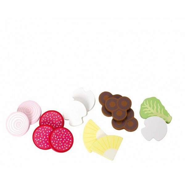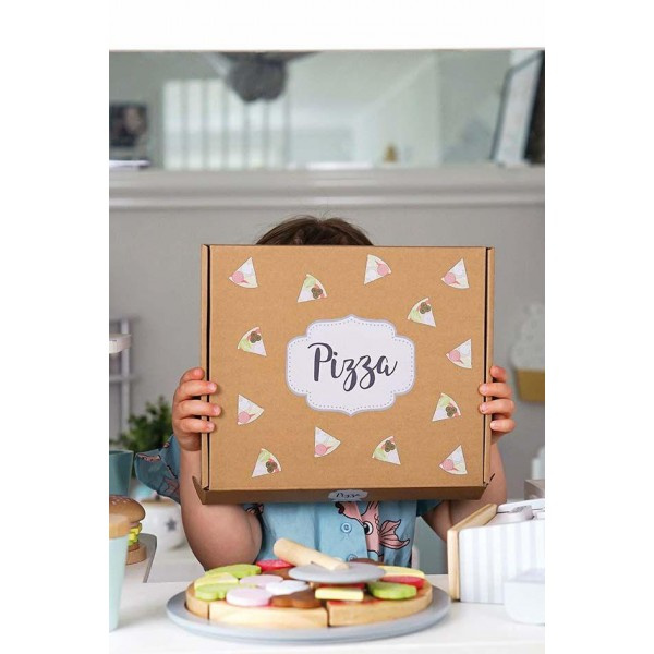 Czas na pizzę! Ta włoska potrawa skradła serca tych małych i dużych, jaka jest Twoja ulubiona? Kawałki pizzy połączone są rzepem, dzięki czemu krojenie sprawia wrażenie bardziej naturalnego. W zestawie dodatki do pizzy, aby można było stworzyć własną, niepowtarzalną kompozycję.