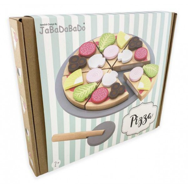 Odwiedziny w pizzerii to zawsze przyjemne doświadczenia – maluchy kochają pizzę. Z zestawem od skandynawskiej marki Jabadabado mogą ją samodzielnie skomponować i profesjonalnie podać. Dodatki do pizzy zachęcają do kreowania różnych pozycji w menu domowej pizzerii. Cały zestaw wykonany jest z drewna, gwarantującego solidność i trwałość zabawki. Elementy pizzy, którą można kroić, połączone są za sprawą rzepów. Dzięki nim zaraz po podaniu pizzy można ją złożyć na nowo i kroić jeszcze raz!