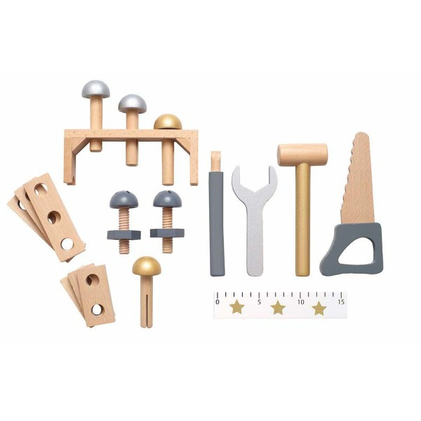 Bajeczna drewniana skrzynia z narzędziami szwedzkiej marki Jabadabado ucieszy każdego małego majsterkowicza. Kolorowa, pięknie wykonana skrzynia a w niej: piła, młotek, śrubokręt, śrubki czyli wszystko co potrzebne. Zabawka świetnie rozwija sprawność manualną.