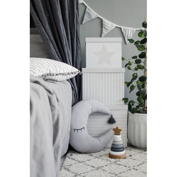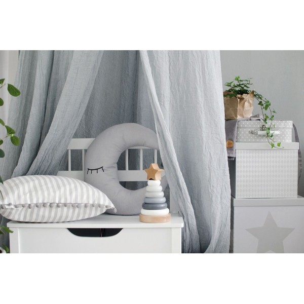 Drewniana wieża edukacyjna, piramida marki Jabadabado w kolorystyce szaro-srebrnej ze złotymi dodatkami. Ta klasyczna zabawka - rozwija zdolności manualne oraz doskonali umiiejetność logicznego myślenia maluchów, każdy krążek jest innej wielkości i innego koloru. Zabawka ma zaokrąglone krawędzie dzięki czemu jest w pełni bezpieczna dla maluchów.