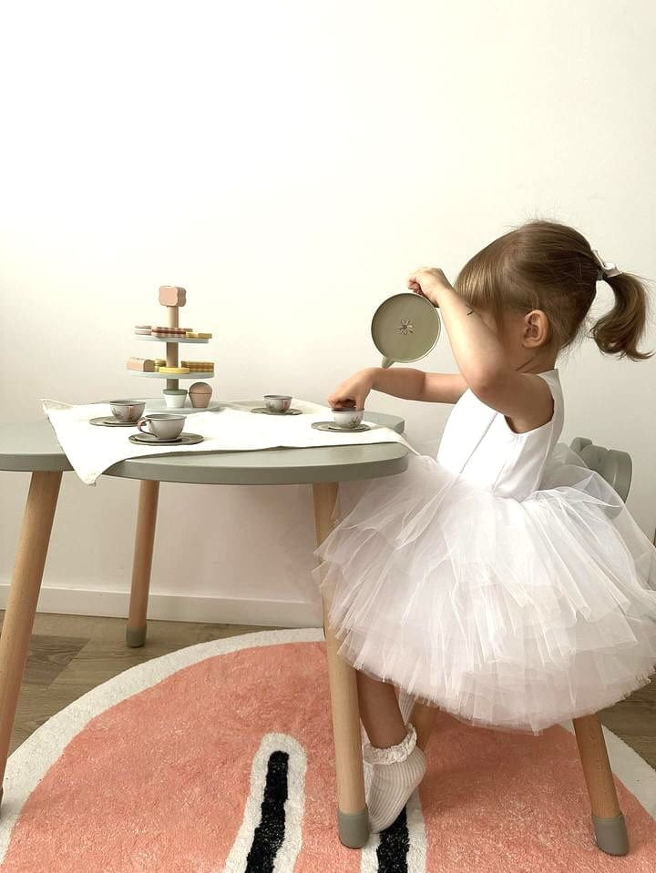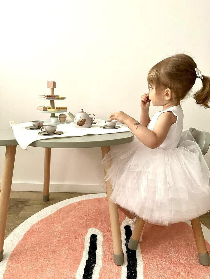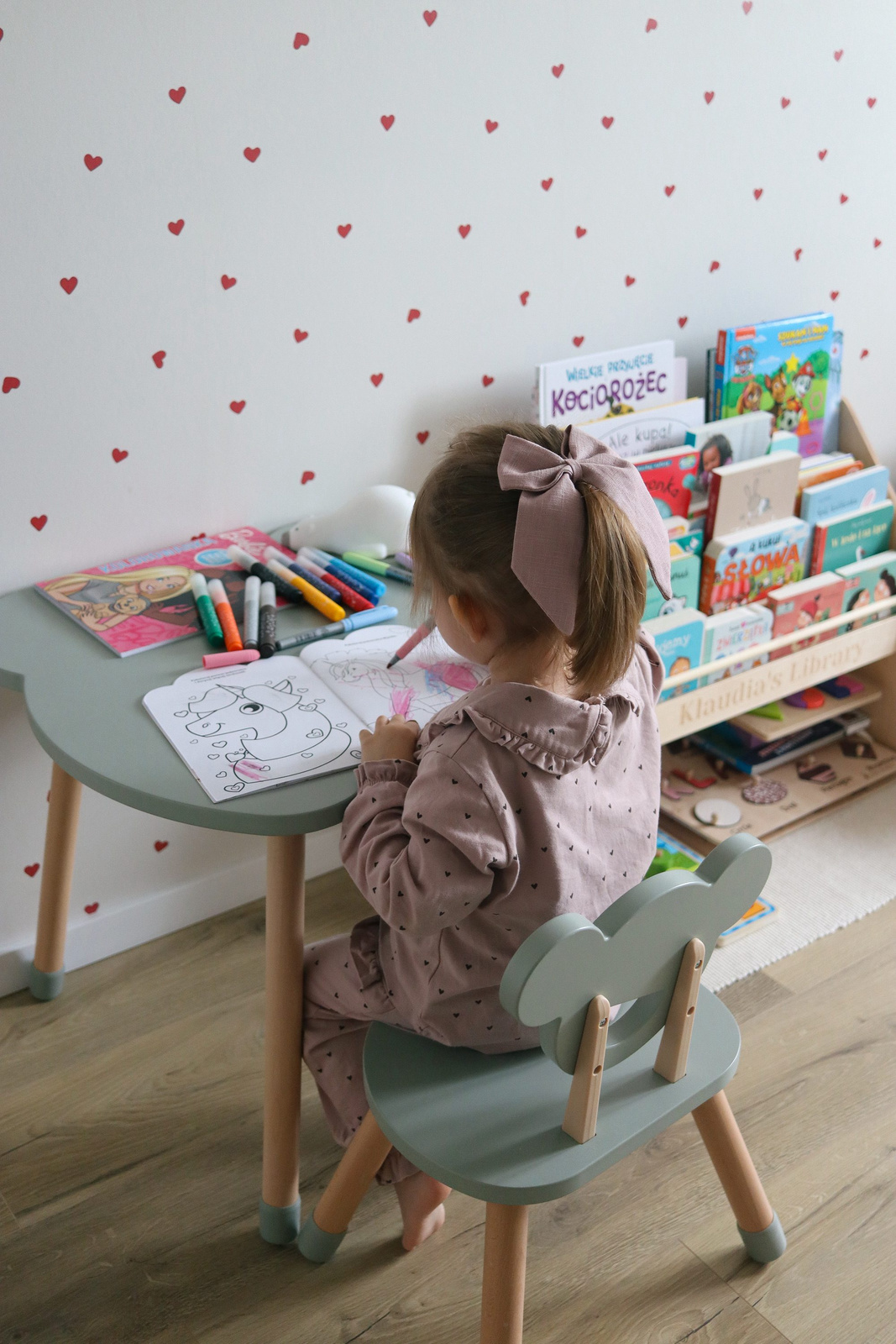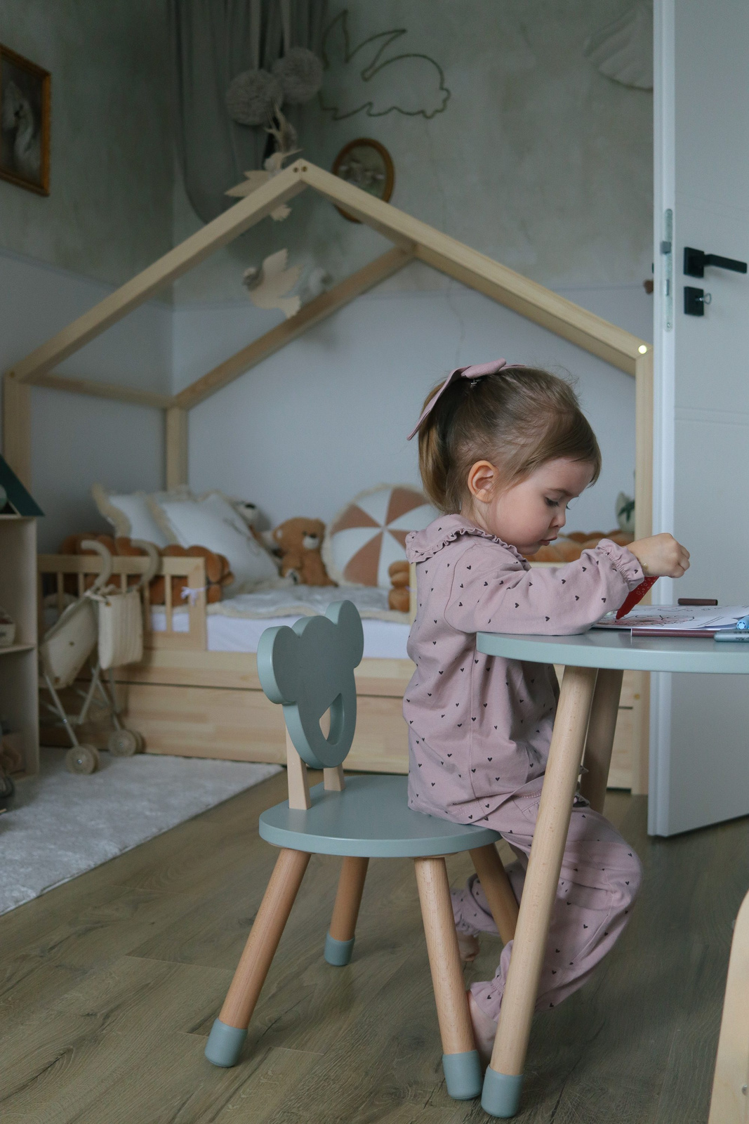 Uroczy drewniany stolik i krzesełko do pokoju dziecięcego. Wykonany bardzo starannie oraz z dbałością o każdy szczegół. Komplet jest solidny, bezpieczny i stabilny – wykonany z najwyższej jakości materiałów. Nasz komplet mebelków z pewnością posłuży dziecku przez kilka dobrych lat. Zarówno stolik, jak i krzesełko to bez wątpienia niezbędne elementy wystroju każdego dziecięcego pokoiku. W późniejszych latach ten zestaw zastąpi biurko i krzesło dla starszych dzieci.
