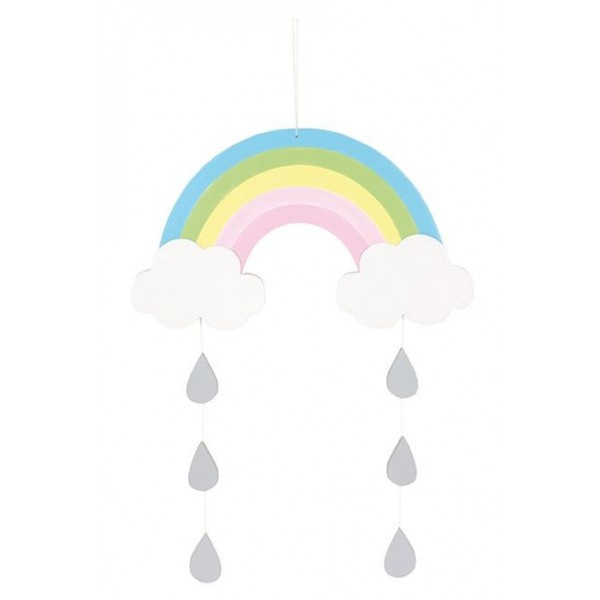 Urocze drewniane mobile z motywem tęczy - to idealny element dekoracyjny do pokoju zarówno dla niemowlaka jak i przedszkolaka. Drewniane mobile tęcza w pięknej pastelowej kolorystyce z białymi kropelkami deszczu, to śliczny dodatek do pokoju dziecięcego, możesz go zawiesić gdziekolwiek sobie wymarzysz. Produkt szwedzkiej marki Jabadabado, zapakowany w pudełko - świetny pomysł na prezent. Wymiary: 50 x 29 x 50 cm Drewniane mobile komponują się z pozostałymi elementami dekoracyjnymi marki Jabadabado, tworząc niezwykle przytulne, stylowe dziecięce wnętrza. W naszej ofercie znajdziecie również uchwyt mocujący plastikowy i drewniany do drewnianych mobili Jabadabado. Jabadabado to szwedzka firma istniejąca na rynku od 1993 roku specjalizująca się w projektowaniu i produkcji zabawek drewnianych, elementów wyposażenia pokoi dziecięcych. Wszystkie produkty Jabadabado cechuje oryginalny design, piękna kolorystyka i niezwykle staranne wykonanie. Wszystkie zabawki marki Jabadabado stworzone są z myślą o dzieciach i pobudzają do kreatywnej zabawy.