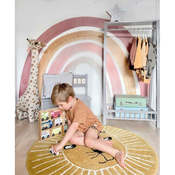 Dzieci uwielbiają zabawę drewnianymi samochodami, ten praktyczny i funkcjonalny zestaw drewnianych samochodów skandynawskiej marki Jabadabado razem z półką na ich przetrzymywanie, sprawi dzieciom mnóstwo frajdy. Znajdziemy w nim aż 9 pojazdów, z których każdy mierzy ok. 10 cm długości. Umieszczone zostały w drewnianej półeczce z przegródkami, która świetnie będzie się prezentować np. na biurku czy na szafce, a dodatkowo sprawia, że samochody z kolekcji będą blisko siebie, w jednym miejscu. W zestawie znajdziemy: