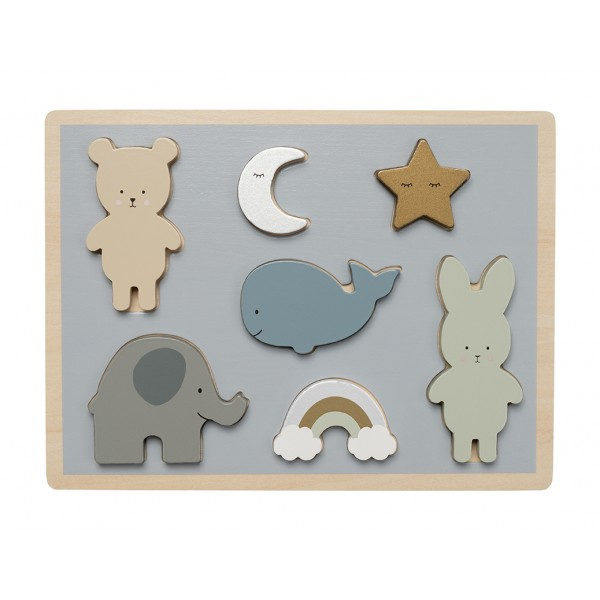 Drewniana układanka z najbardziej znanej serii miś i królik od skandynawskiej marki Jabadabado. Puzzle są dostosowane do małych rączek waszych maluchów. Oprócz układania, figury posłużą także jako samodzielne zabawki.