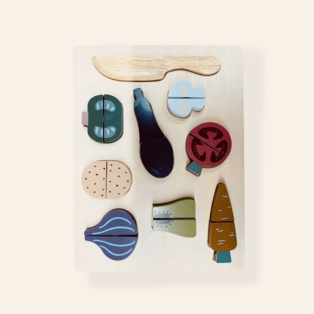 Kolorowe warzywa i owoce do krojenia na rzep wykonane z trwałego i naturalnego drewna doskonale sprawdzą się dla młodszych dzieci. Na drewnianej podstawce znajdują się wgłębienia, które swoim kształtem odpowiadają kolorowym kształtom. Drewniane układanka do nauki to świetny pomysł na łatwy i przyjemny sposób przyswojenia i utrwalenia nowych słów oraz świetnej zabawy!