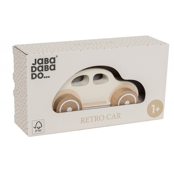 Uroczy drewniany samochodzik skandynawskiej marki Jabadabado w kolorystyce beżowej z elementami naturalnego drewna, z pewnością będzie pierwszym ulubionym pojazdem Twojego dziecka. Ten drewniany pojazd posiada budowę ułatwiającą chwytanie - dopasowaną do małych rączek dziecka, oraz solidne, cicho poruszające się kółka. Idealny do ćwiczeń motoryki małej - dziecko pchając pojazd, wprowadza go w ruch i  ćwiczy zdolności manualne.  Autko posiada zaokrąglone krawędzie jest w pełni bezpieczny dla malucha. Wymiary: 14 cm Wiek: 1+ Wykonane z  certyfikowanego drewna FSC. Jabadabado to szwedzka marka istniejąca na rynku od 1993 roku specjalizująca się w projektowaniu i produkcji zabawek drewnianych, elementów wyposażenia pokoi dziecięcych, akcesoriów niemowlęcych. Wszystkie produkty marki Jabadabado cechuje oryginalny, nietuzinkowy design, piękna kolorystyka, oraz niezwykle staranne wykonanie. Wszystkie zabawki marki Jabadabado stworzone są z myślą o dzieciach i pobudzają do kreatywnej zabawy.