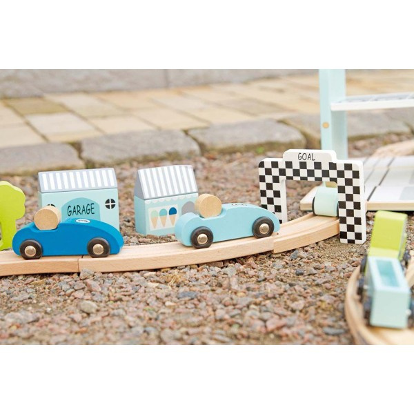 Ten znakomity tor wyścigowy zapewni wielogodzinną, emocjonującą zabawę Twojemu maluchowi, idealnie pasuje również do pozostałych zabawek z marki Jabadabado takich jak: stacja benzynowa, tory samochodowe, kolej drewniana oraz jest kompatybilny z innymi znanymi markami.