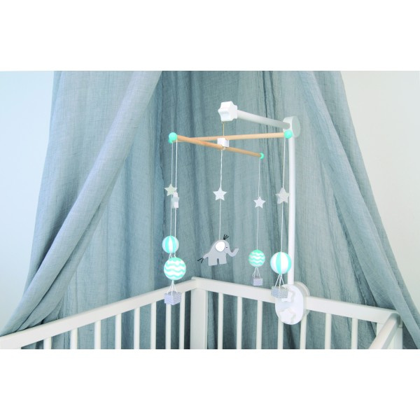 Drewniany uniwersalny uchwyt do zamontowania karuzeli lub mobili nad dziecięcym łóżeczkiem, idealnie pasuje do wszystkich drewnianych mobili marki Jabadabado. Stylowo wykończony z piękną białą gwiazdką, będzie idealnym dodatkiem dekoracyjnym w pokoju Twojego Malucha -z łatwością go zamontujesz i przeniesiesz w inne miejsce.