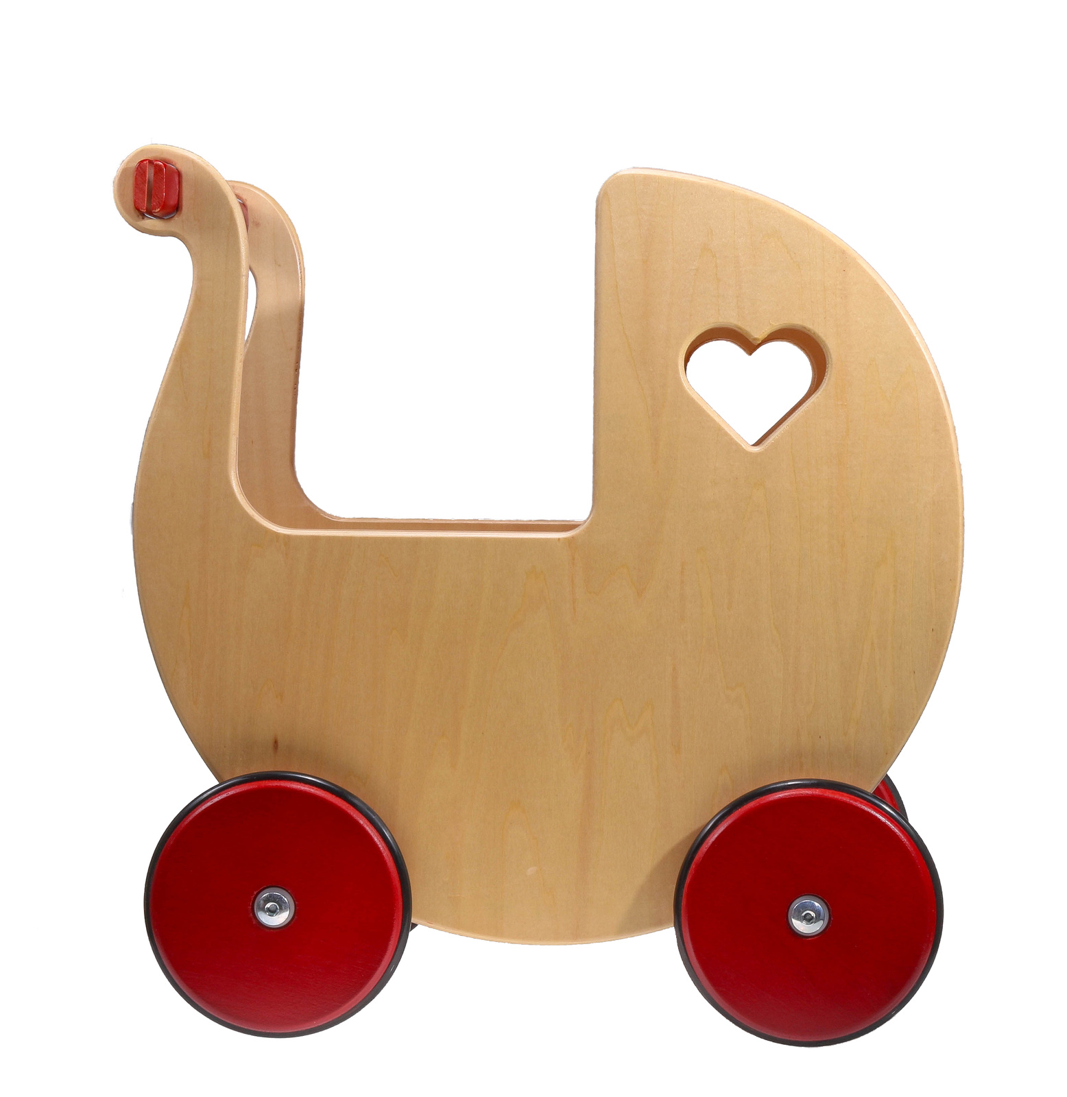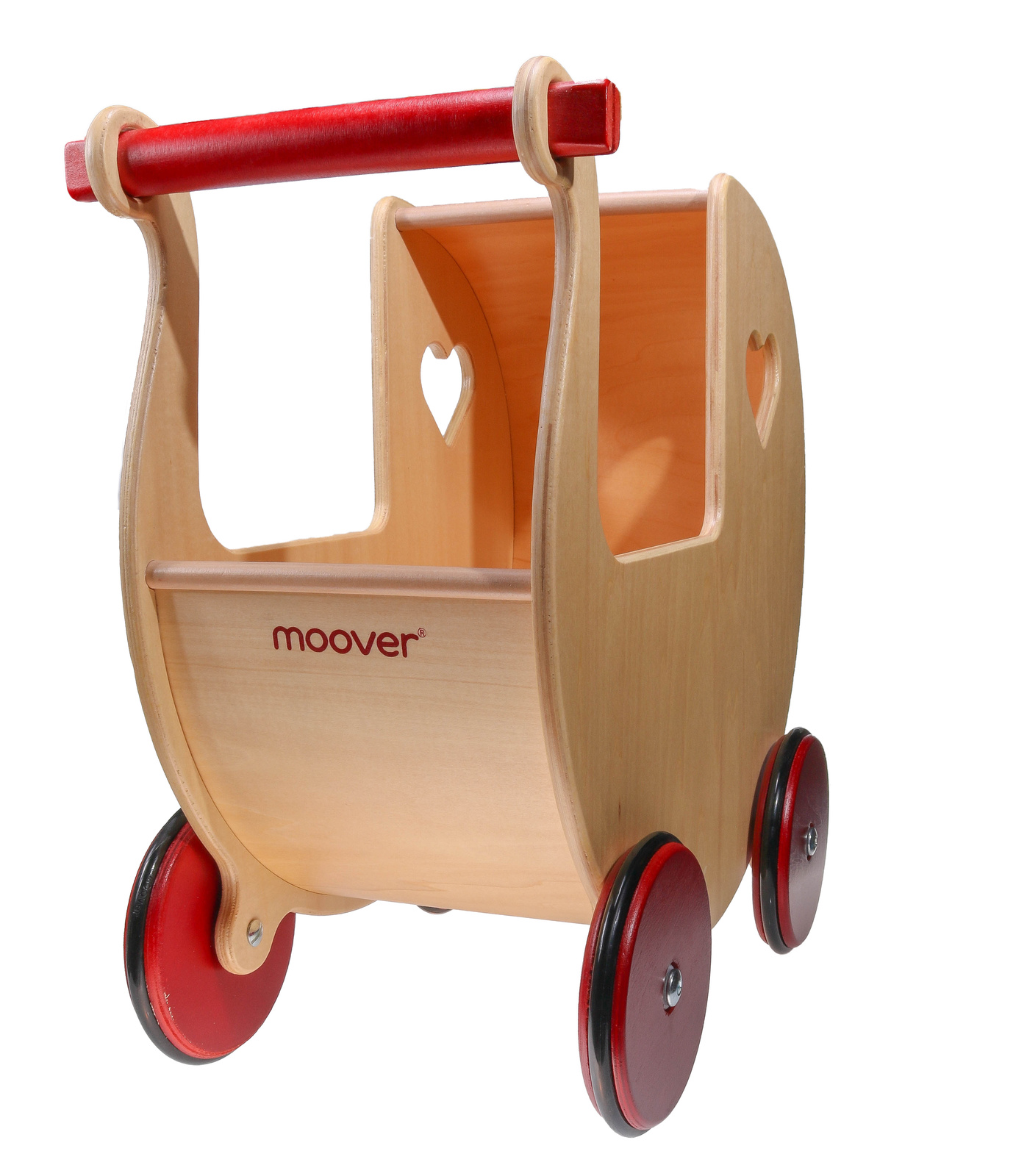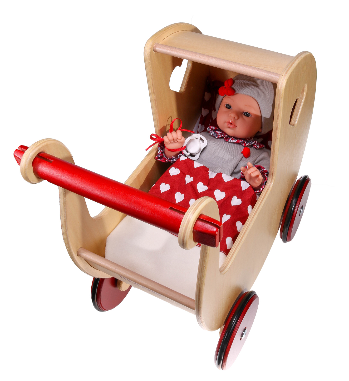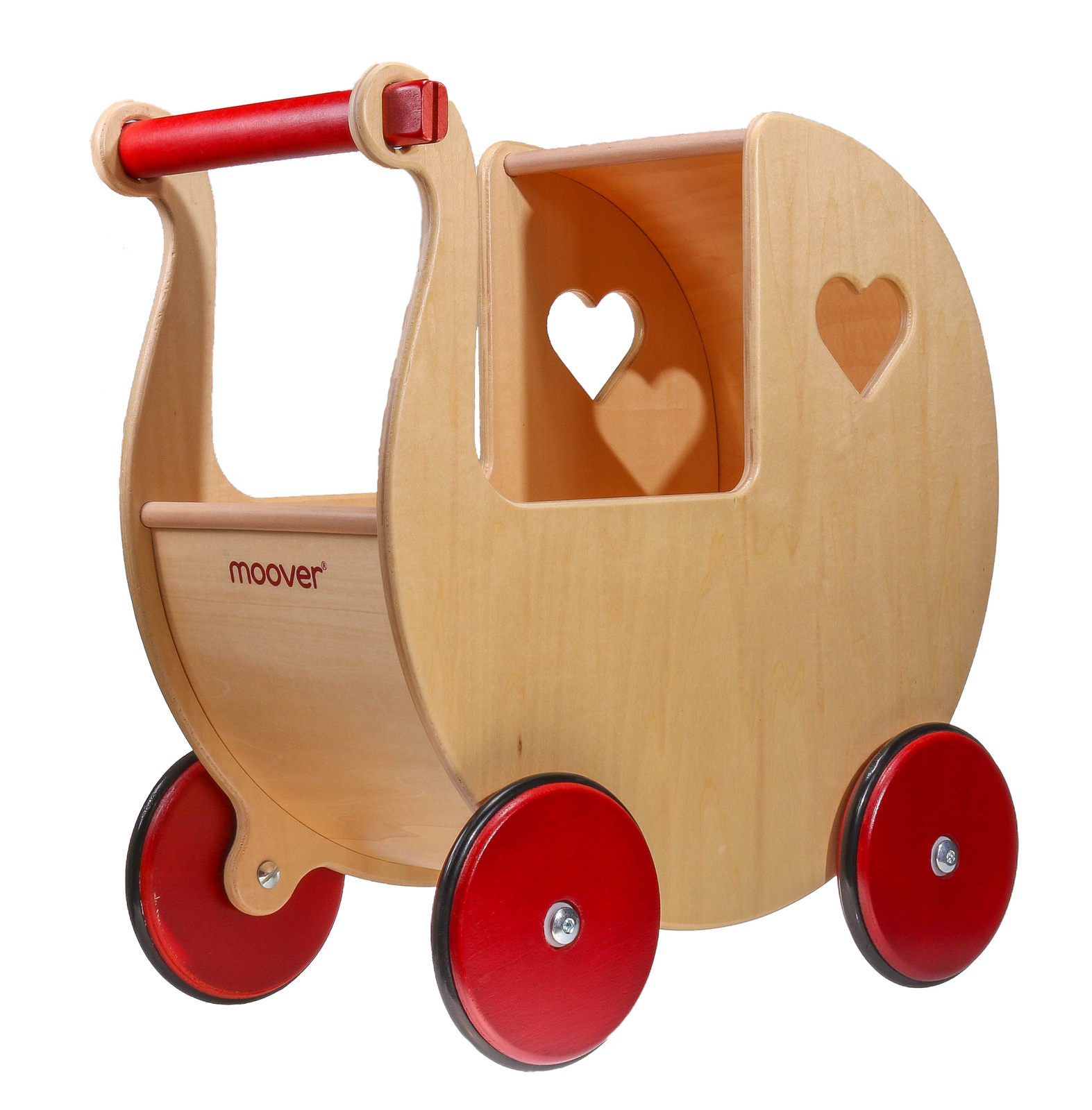 Wózek dla lalki w kolorze naturalnego drewna przeznaczony jest dla lalki o wysokości 42 cm. Model marki Moover uzupełnia kolekcję zabawek z serii Classic Large Toys. Urzeka precyzyjnym wykonaniem i designem w stylu retro. Efektu dodają dwa wyżłobione serduszka po bokach wózka. Twoje dziecko uwielbia bawić się lalkami? Zabawka na pewno spodoba się miłośniczkom lalek poświęcającym czas na ich opiekę. Przywołaj wspomnienia z dzieciństwa, oczaruj swoją pociechę zabawką sprzed lat i odkryj na nowo dziecięcy świat.