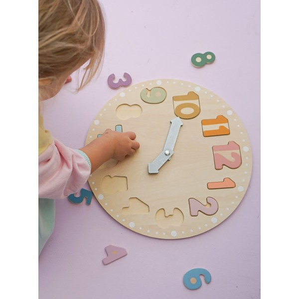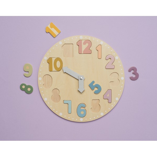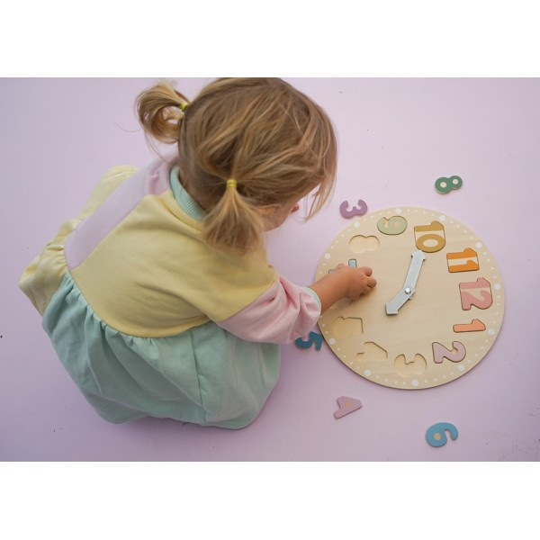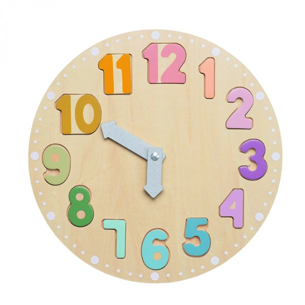 - Drewniany zegar edukacyjny marki Jabadabado to zarazem puzzle i sorter, który poprzez zabawę wprowadzi dzieci w świat mierzenia czasu. Zabawa polega na ułożeniu wszystkich elementów oznaczonych liczbami od 1 do 12 we włąściwych miejscach na tarczy zegara.