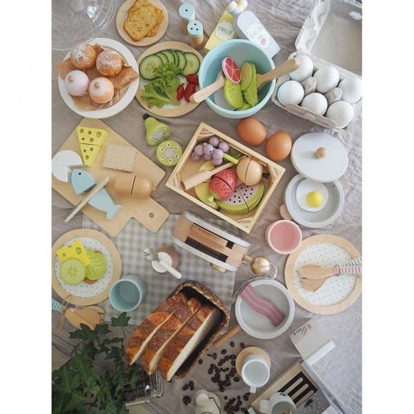 Śniadanie to najważniejszy posiłek dnia, z uroczym zestawem śniadaniowym skandynawskiej marki Jabadabado - może być zdrowe i smaczne. Uroczy zestaw śniadaniowy z tosterem to idealny pomysł na dziecięce akcesoria kuchenne. Idealnie sprawdzi się do odgrywania ról dorosłych, szykowania posiłków dla wszystkich lal i pluszaków. Dzieci obserwują nas podczas codziennych czynności i chcą odzwierciedlać każdy nasz ruch. Każdego dnia chcą nam towarzyszyć i pomagać w kuchni, podczas przygotowywania smacznych i zdrowych posiłków. Drewniany zestaw śniadaniowy z tosterem to niezliczone w możliwości fantastycznej zabawy zarówno dla dziewczynek, jak i dla chłopców - daj się zaskoczyć, i pozwól zaserwować sobie śniadanie do łóżka!