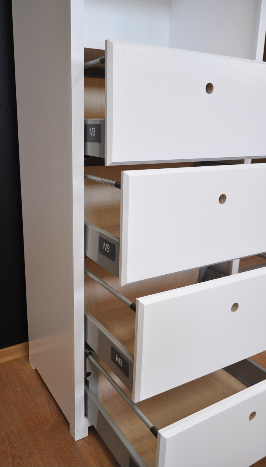 • szuflady meblowe Blum z hamulcem i cichym domykiem.