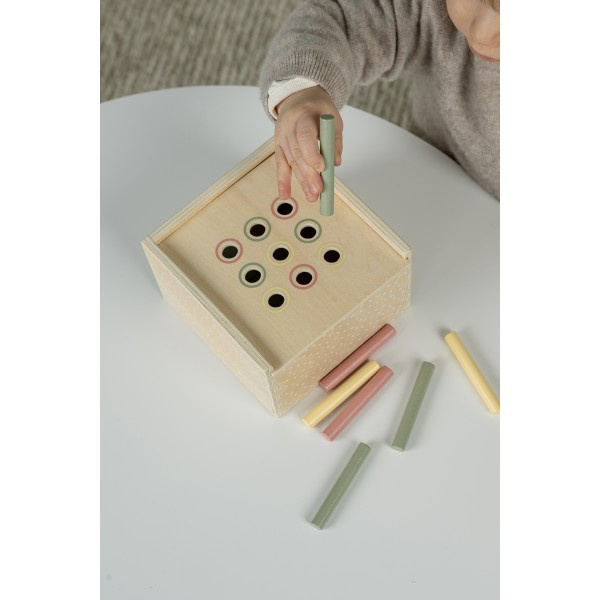 - drewniana wbijanka - kolorowa wbijanka z młotkiem to ponadczasowa zabawka, dzięki której dziecko może bezkarnie stukać młotkiem - a dzieci to uwielbiają. Ta drewniana zabawka stymuluje dzieci do kreatywnej zabawy, idealna do nauki kolorów, ćwiczy koordynację wzrokowo-ruchową, i rozwija motorykę małą.