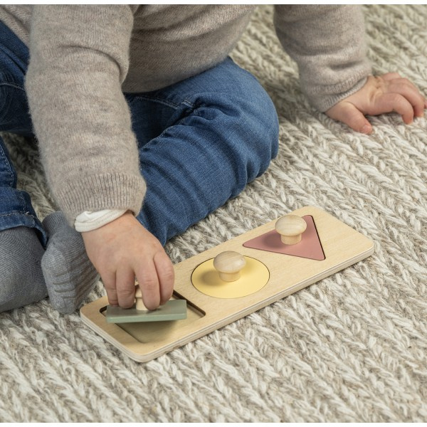 - drewniana układanka puzzle kształty : ta układanka zachęca dziecko do samodzielnego układania, dopasowywania i rozwiązywania - wykorzystując wyobraźnię i kreatywność, układanka stanowi wyzwanie, gdzie dziecko musi odkryć odpowiednie wzory, idealna do nauki kształtów i kolorów, wspiera małą motorykę, rozwija umiejętność dopasowywania, ćwiczy koordynację ręka-oko, oraz percepcję wzrokową. Duże drewniane gałki- uchwyty zostały zaprojektowane tak, aby maluchy z łatowścią były w stanie je chwytać.