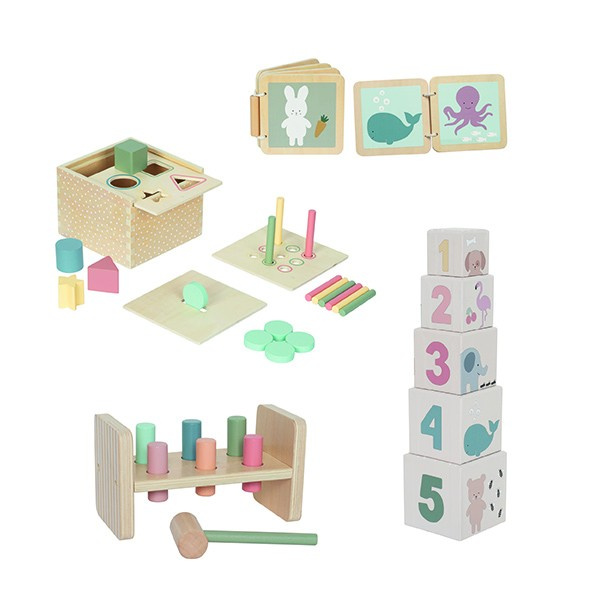 Edukacyjny zestaw zabawek marki Jabadabado - to idealny pomysł na prezent, rozwojowe drewniane zabawki - zapakowane w eleganckie pudełko, ma celu zapewnienie edukacyjnej zabawy dzieciom w wieku 12-18 msc. Nie musisz się więcej zastanawiać, czy dany produkt jest odpowiedni dla rozwoju dziecka w tym wieku, tu znajdziesz wszystko to co, niezbędne do zapewnienia nauki poprzez zabawę. Starannie dopasowany do możliwości wiekowych dziecka zestaw czterech drewnianych zabawek edukacyjnych rozwija sensorykę i motorykę dzieci powyżej 18 miesiąca, oraz zapewnia stymulowanie zdolności poznawczych dzieci.