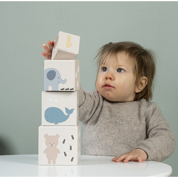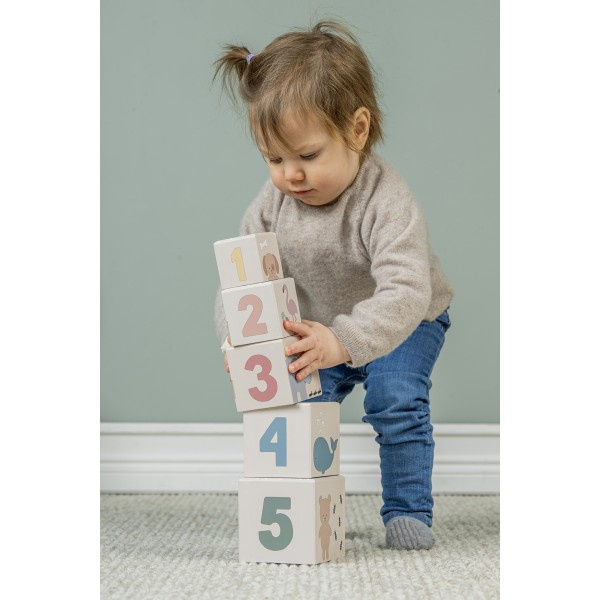 -piramida, wieża kostki do układania - doskonała zabawka wspierająca rozwój motoryki małej, zręczności i koordynacji wzrokowo-ruchowej, zaprojektowana tak, by zachęcać dzieci do poznawania równowagi i balansu pomiędzy przedmiotami, aby utrzymać wieżę w pozycji pionowej. Idealna do nauki wczesnych predyspozycji matematycznych: poznamy rozmiar, wzrost, wielkość, porównywanie, kolejność.
