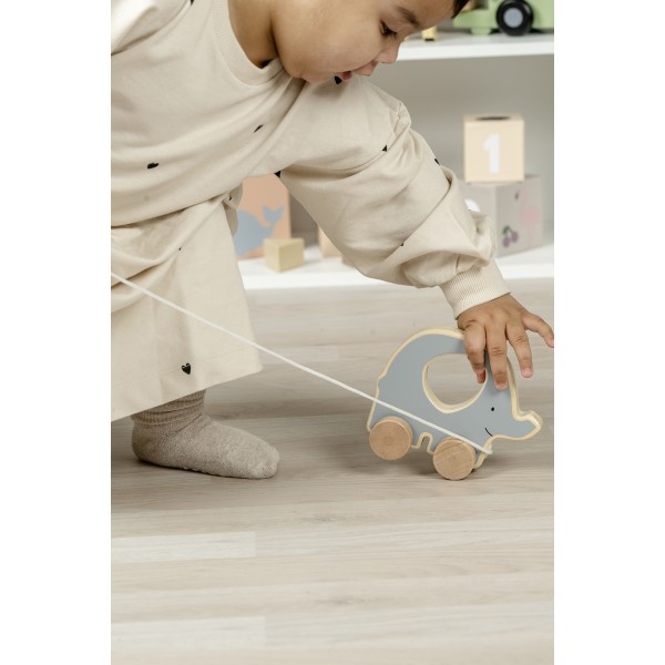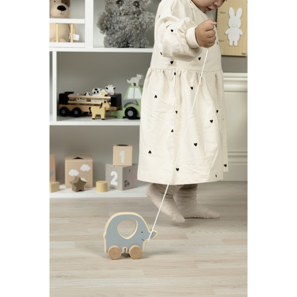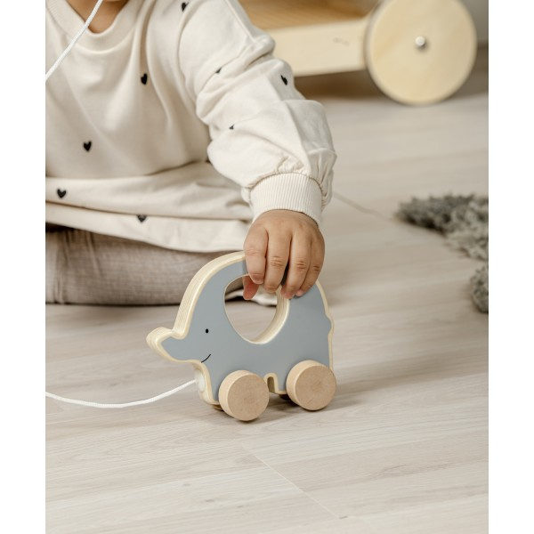 - słoń na sznureczku - pociągnij słonia - ta urocza zabawka pomaga dziecku rozwijać równowagę i koordynację w nauce chodzenia, świetnie nadaj się również do odgrywania ról