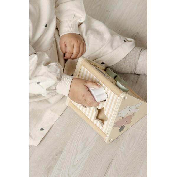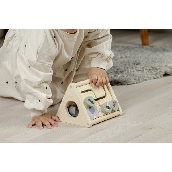 - trójkąt aktywności - centrum edukacyjne - to różnorodne możliwości zabawy i nauki jednocześnie, idealny do nauki : rozpoznawania kształtów i kolorów, nauki rozwiązywania problemów, logicznego myślenia i ćwiczeń wspomagających koordynację ręka-oko. W trójkącie znajdziecie : sorter kształtów, przekłądnie z uroczymi kwiatkami oraz labirynt z poruszającymi się owadami.
