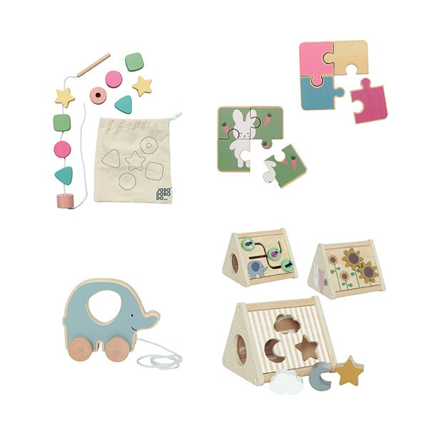 Edukacyjny zestaw zabawek marki Jabadabado - to idealny pomysł na prezent, rozwojowe drewniane zabawki - zapakowane w eleganckie pudełko, ma celu zapewnienie edukacyjnej zabawy dzieciom w wieku 18-24 msc. Nie musisz się więcej zastanawiać, czy dany produkt jest odpowiedni dla rozwoju dziecka w tym wieku, tu znajdziesz wszystko to co, niezbędne do zapewnienia nauki poprzez zabawę. Starannie dopasowany do możliwości wiekowych dziecka zestaw czterech drewnianych zabawek edukacyjnych rozwija sensorykę i motorykę dzieci powyżej 18 miesiąca, oraz zapewnia stymulowanie zdolności poznawczych dzieci.