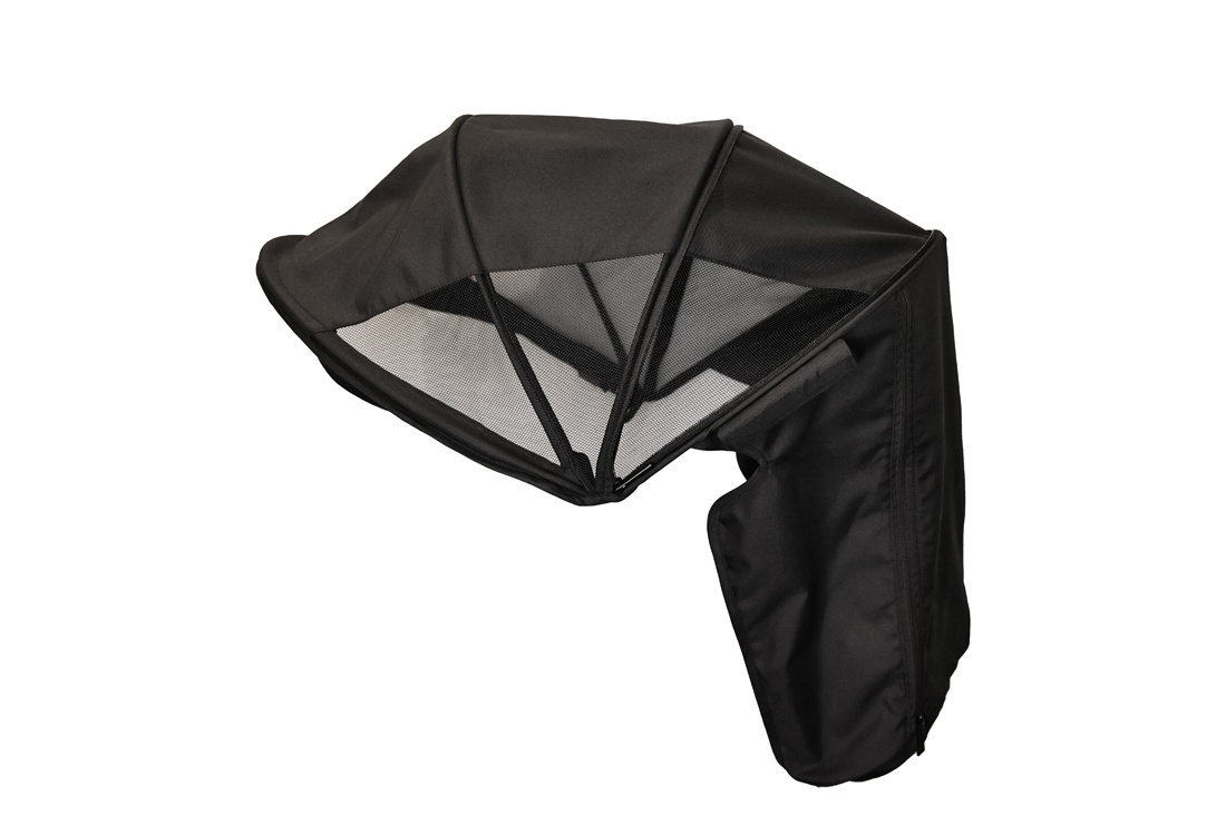 Okienka wentylacyjne z siateczki w daszku zapewniają delikatny przewiew. Daszek można rozpiąć za pomocą suwaka i poszerzyć w razie potrzeby.