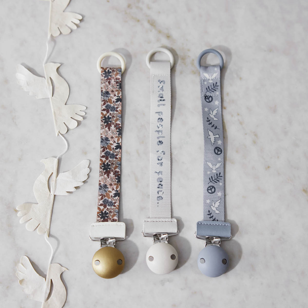 Ulepszana od 2005 roku, zawieszka do smoczka jest naszym kultowym produktem. To pierwszy produkt Elodie, który zainspirował powstanie całej firmy. Te wysokiej jakości klipsy do smoczków są niezbędne, żeby utrzymać w czystości smoczek Twojego dziecka, ponieważ gwarantują, że nie spadnie on na podłogę i nigdy się nie zgubi. Zaprojektowane w wyjątkowy sposób zawieszki wykonane z trwałej stali nierdzewnej bez dodatku niklu i są w dyskretny sposób ozdobione logotypem Elodie. Różnorodna stylistyka, prostota i elegancja — oferujemy szeroką gamę wzorów do wyboru, aby można je było dobierać do swojego stylu. Wygląd zawieszek można dopełnić jednym z naszych pasujących do danego stylu smoczków oraz innych akcesoriów szwedzkiej marki.