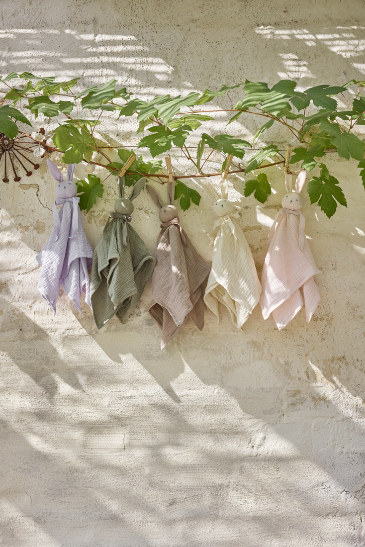 Poznaj Blinkie - miękka, przytulną i miłą w dotyku przytulankę - kocyk, którą polubi Twój maluch. Blinkie to połączenie miękkiej zabawki króliczka z kocykiem - całość wykonana z naturalnego bawełnianego muślinu.
