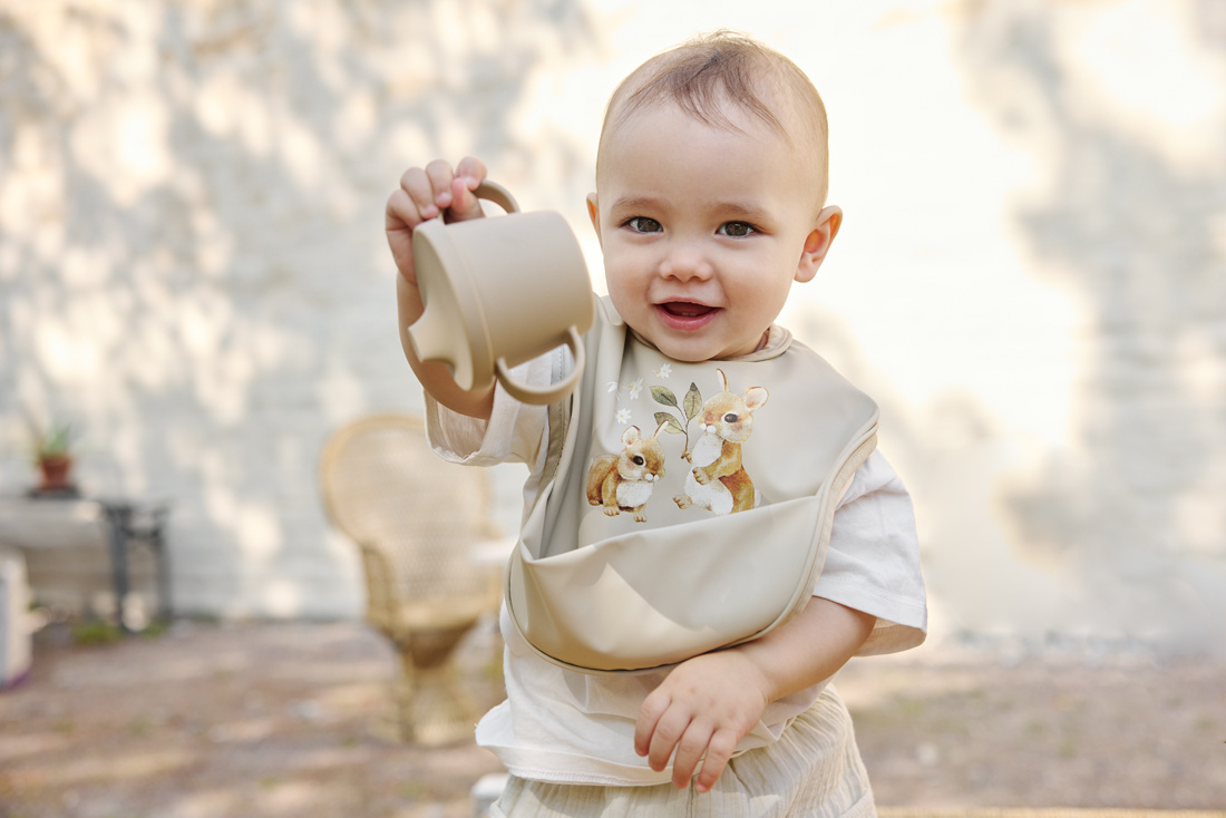 Stylowy śliniaczek szwedzkiej firmy Elodie Details, wyposażony w kieszonkę z przodu, zapewnia porządek i komfort w trakcie karmienia dziecka. Wykonane z szybkoschnącego materiału posiadającego certyfikat Oeko-Tex, całkowicie wolny od polichlorku winylu (PVC-free), idealne dopasowanie do potrzeb każdego dziecka. Śliniaczki wystarczy przetrzeć lub umyć po każdym użyciu i odczekać kilka minut aż wyschną. Śliniaczki są zapinane na duży miękki rzep. To produkt praktyczny i przyjazny dla środowiska.