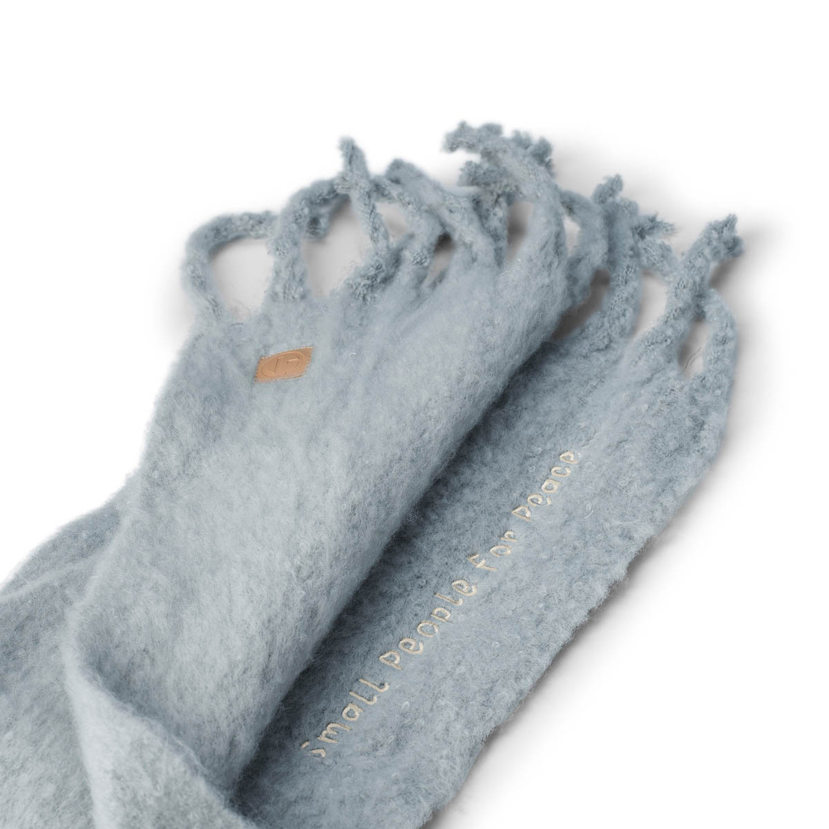 Uroczy i luksusowy sposób na ochronę szyi malucha przed chłodem zimowych dni. Szalik przewleka się przez wycięty otwór, aby pozostał na swoim miejscu. Ma też wyhaftowany napis „Small People for Peace”.