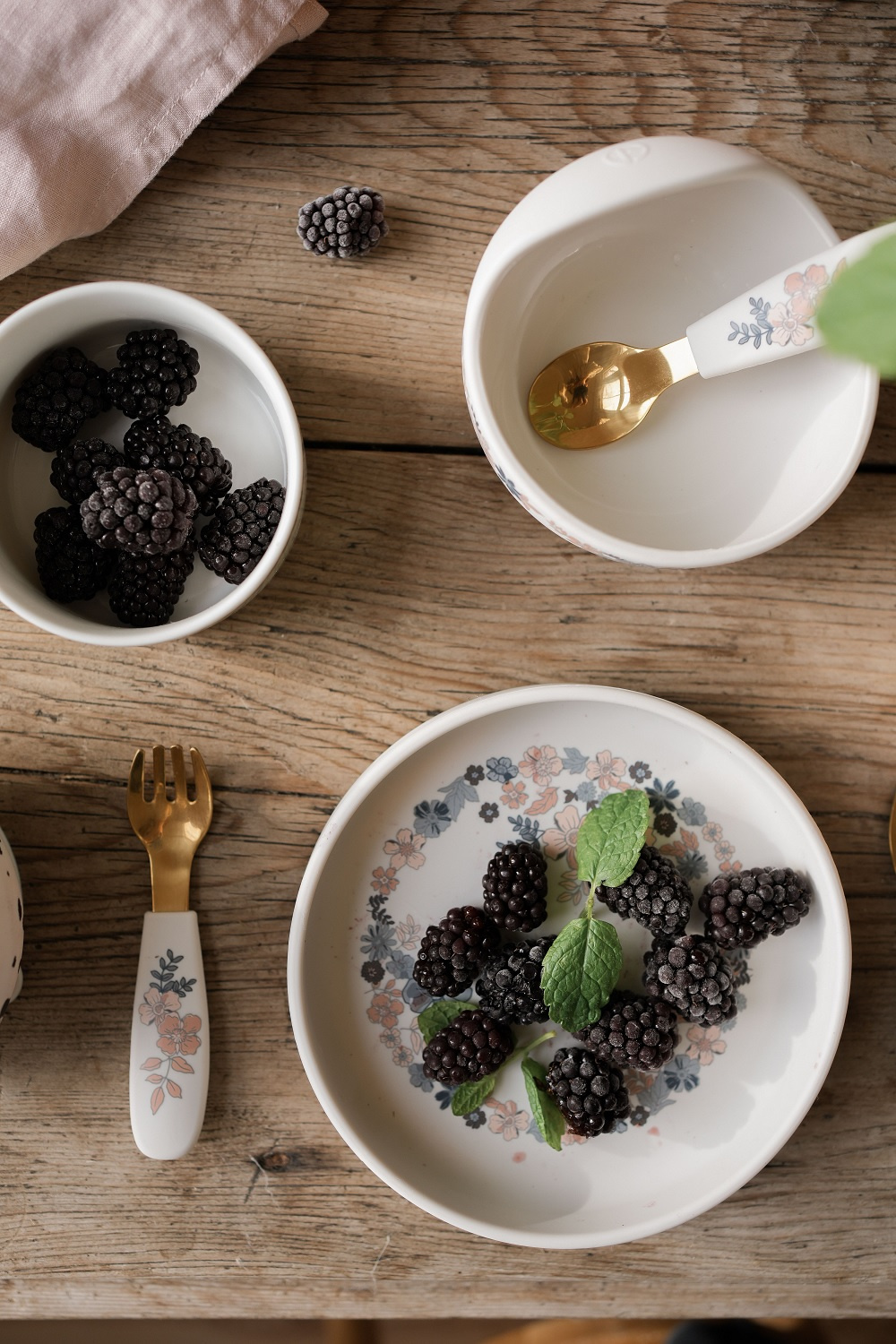 - Zestaw Elodie Details do nauki jedzenia. Silikonowy talerzyk z przyssawką zapobiega bałaganowi. Sztućce (stal nierdzewna + silikon) idealnie pasują do małych rączek. Bez BPA. Można myć w zmywarce.