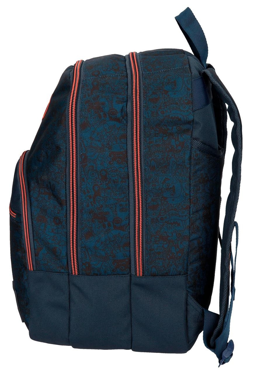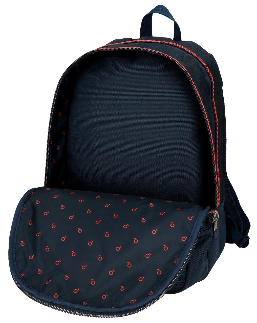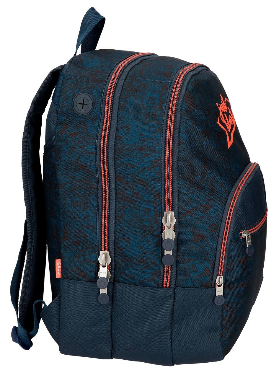 • Plecak 30,5 cm x 44 cm x 15 cm wykonany z poliestru. • Podwójna komora z dwiema przednimi kieszeniami, jedna z organizerem na długopisy i dwoma różnymi rozmiarami przegródek. • Możesz wygodnie słuchać muzyki dzięki wyjściu słuchawkowemu i wewnętrznej kieszeni na urządzenie. • Idealny do przenoszenia książek, zeszytów i teczek w formacie DIN A4. • Możesz również umieścić swoje dane osobowe w specjalnej przestrzeni, która znajduje się w przedniej kieszeni. • Ergonomiczne i wyściełane paski. Opaska na plecy do dostosowania do wózka.Gwarancja producenta na 2 lata