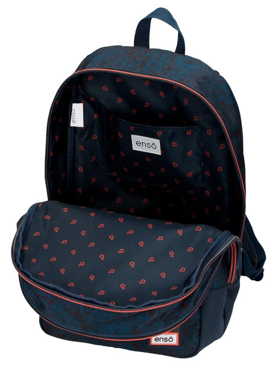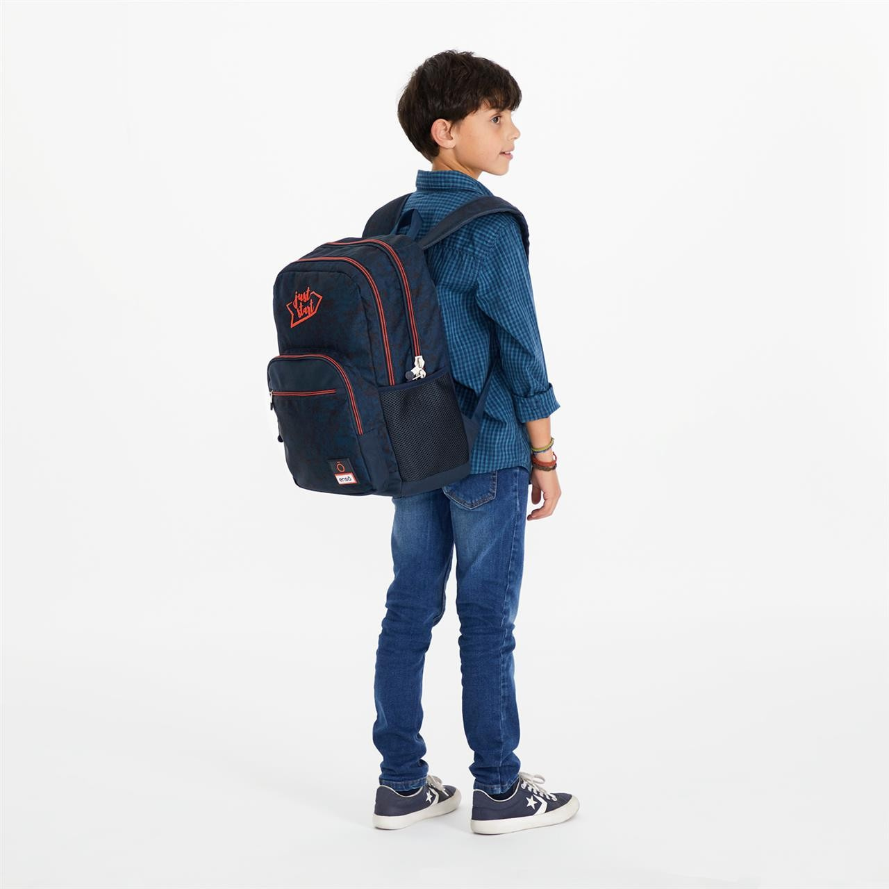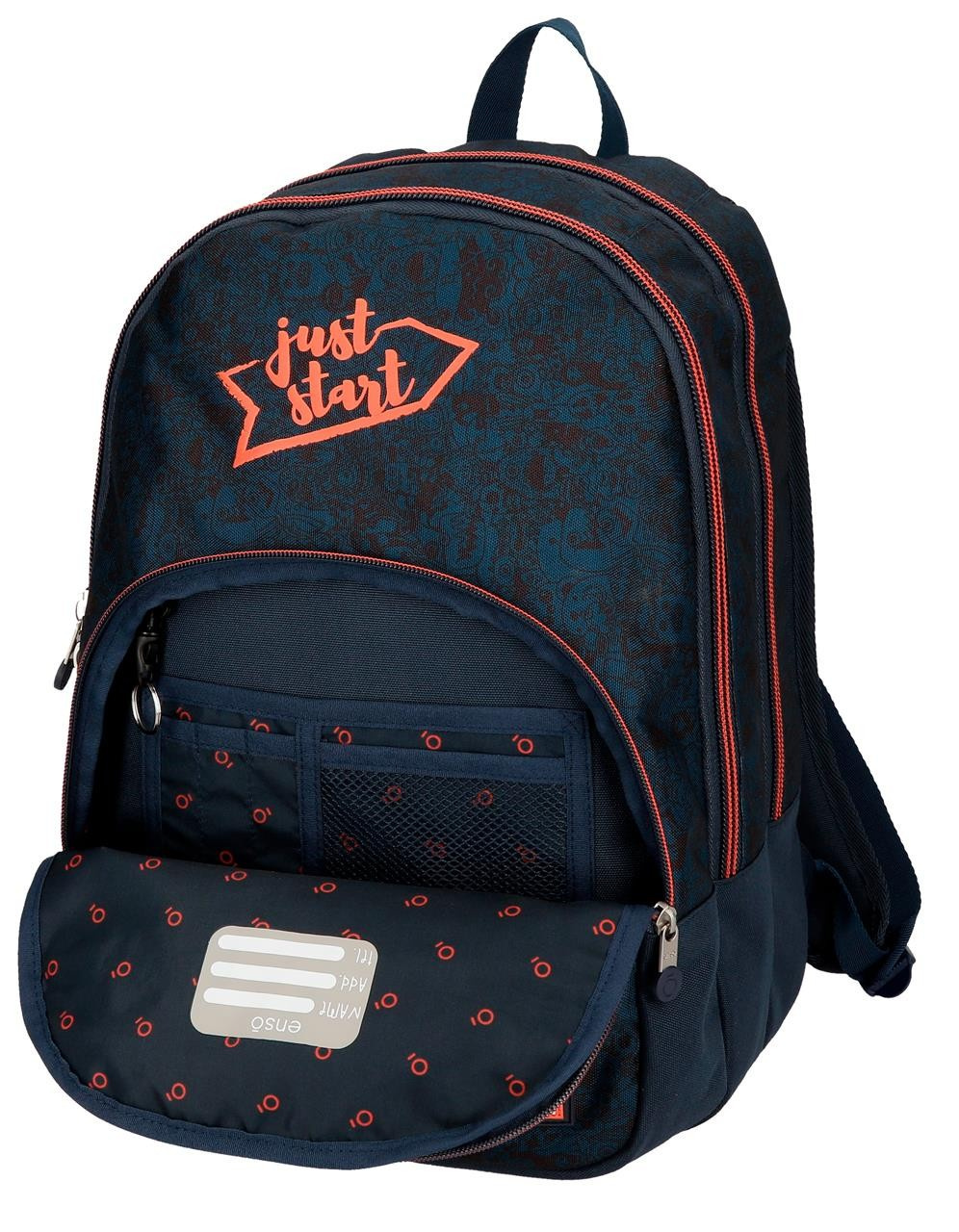 • Plecak 30,5 cm x 44 cm x 15 cm wykonany z poliestru. • Podwójna komora z dwiema przednimi kieszeniami, jedna z organizerem na długopisy i dwoma różnymi rozmiarami przegródek. • Możesz wygodnie słuchać muzyki dzięki wyjściu słuchawkowemu i wewnętrznej kieszeni na urządzenie. • Idealny do przenoszenia książek, zeszytów i teczek w formacie DIN A4. • Możesz również umieścić swoje dane osobowe w specjalnej przestrzeni, która znajduje się w przedniej kieszeni. • Ergonomiczne i wyściełane paski. Opaska na plecy do dostosowania do wózka.Gwarancja producenta na 2 lata