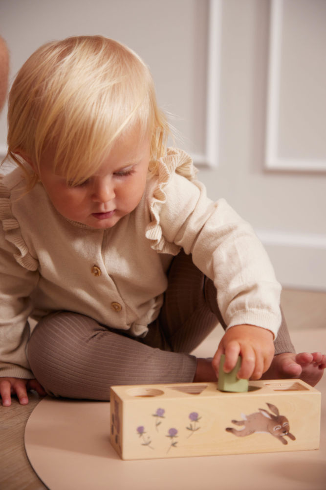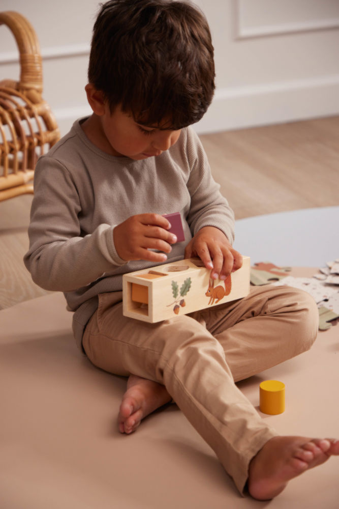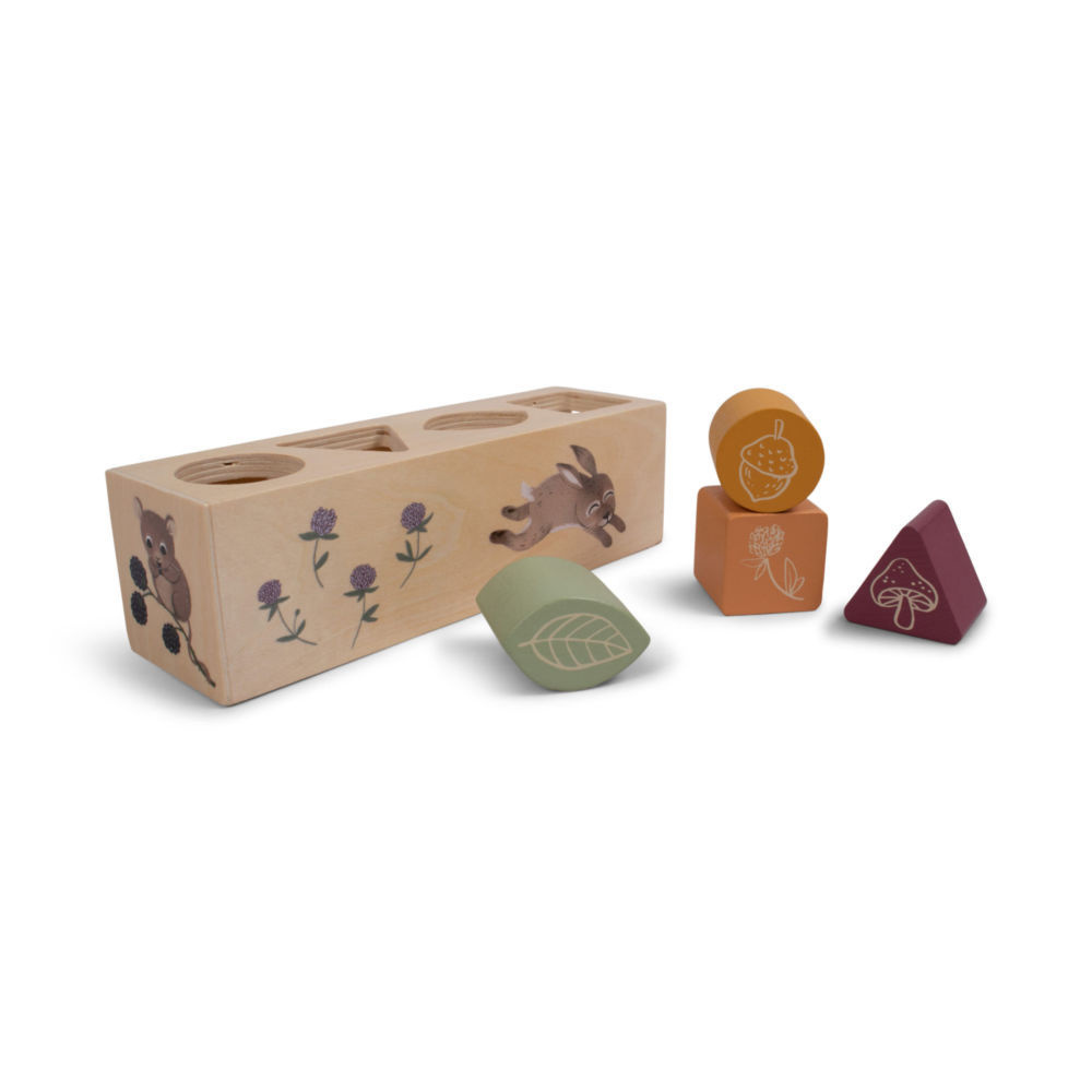 Drewniany sorter z kształtami to zabawkowy „must have” każdego dziecka. Kształty uczą koordynacji ręka oko, koncentracji i precyzji. Kolorowe, ręcznie malowane ilustracje fascynującej, nordyckiej przyrody zachwycą i rodziców, i dzieci. Zabawka wykonana jest z największą starannością i dbałością o detale.