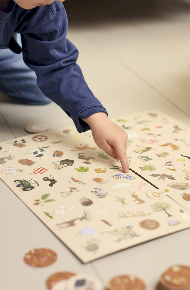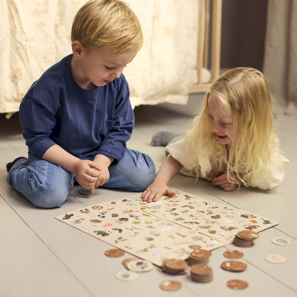 Zapewnij małym odkrywcom i całej rodzinie pełną śmiechu i ekscytacji zabawę z grą Find It First od FILIBABBA! Ta angażująca gra łączy szybkie myślenie i bystre oko, gdy gracze ścigają się, by odnaleźć pasujące kafelki na planszy. Dzięki 100 pięknie ilustrowanym kafelkom, prezentującym ulubione zwierzęta i elementy FILIBABBA, gra stanie się wspaniałą okazją do zdrowej rywalizacji i wspólnej zabawy.