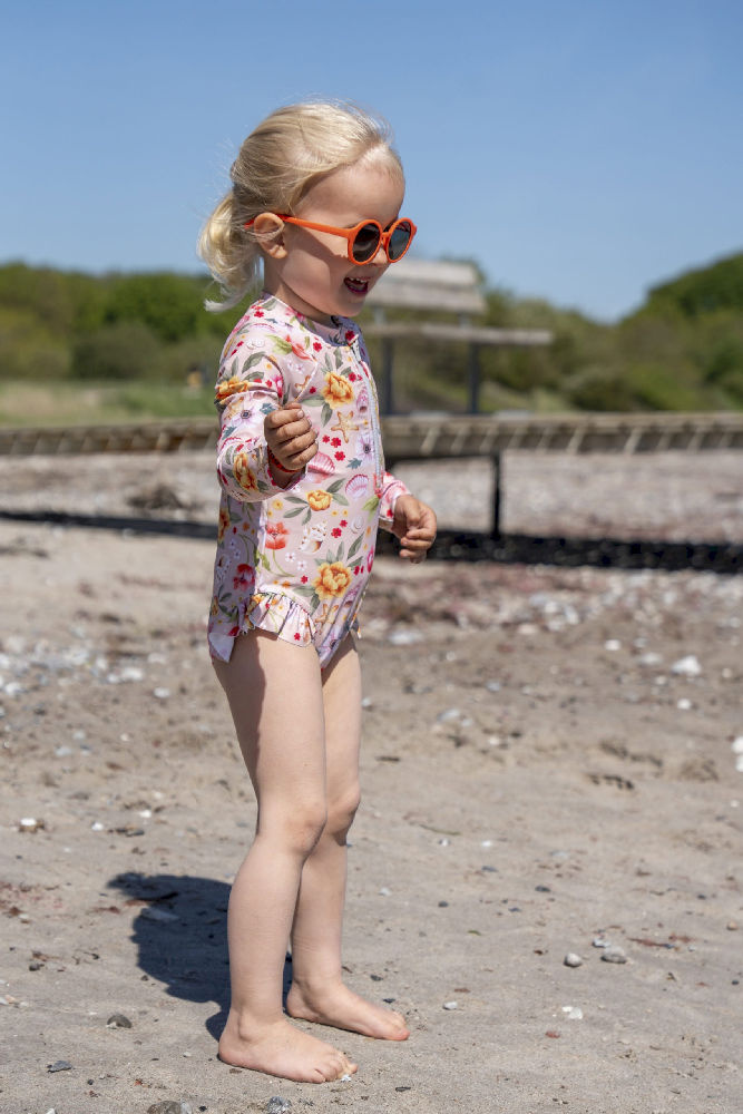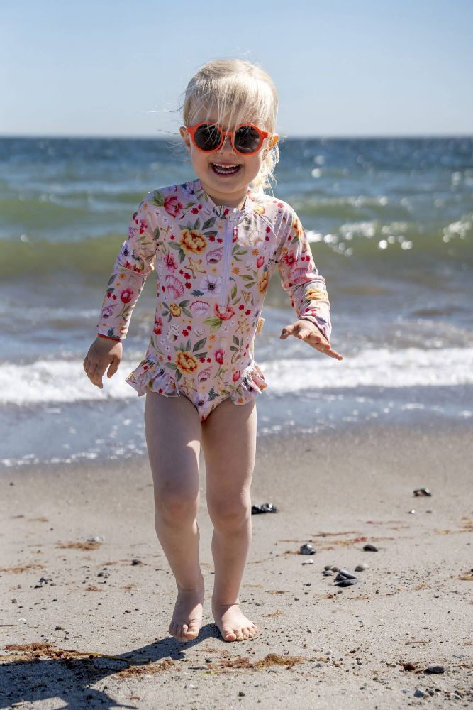 Z naszym uroczym strojem kąpielowym z filtrem UV dla dzieci, słoneczne dni na basenie, plaży czy w ogrodzie będą jeszcze przyjemniejsze! Wspaniały strój z długimi rękawami i uroczą falbaniastą spódniczką oferuje ochronę UV 50+ i jest przyjemny dla delikatnej skóry dziecka. Fantastyczne, ręcznie rysowane ilustracje zachwycą dzieci w każdym wieku.