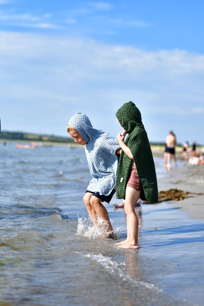 "Ponczo kąpielowe z kapturem we wzór zygzaka, idealnie sprawdzi się po codziennej kąpieli, na basenie czy na plaży. Zatrzaski przy ramionach zapewniają odpowiednie dopasowanie.