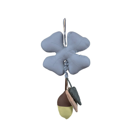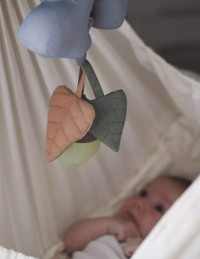 Pozytywka w kształcie liścia z szeleszczącymi elementami. Można zawiesić ją nad łóżeczkiem, w wózku, czy kołysce. Szeleszczące elementy zaciekawią maluszka, pobudzając zmysły wzroku, dotyku i słuchu, a delikatne kołysanki zapewnią spokojny sen.
