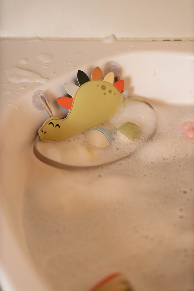 Czas kąpieli to mnóstwo zabawy, śmiechu, piany i mnóstwo zabawek. Potem zabawki trzeba gdzieś schować i właśnie tu przydaje się ta urocza siatka do przechowywania. Nie tylko utrzymuje zabawki kąpielowe w porządku, ale także podnosi poziom zabawy. Wyobraź sobie swojego malucha pluskającego się obok przyjaznego dinozaura, podczas gdy trzy kolorowe, pływające kulki tańczą dookoła, wypełniając każdą chwilę radością.